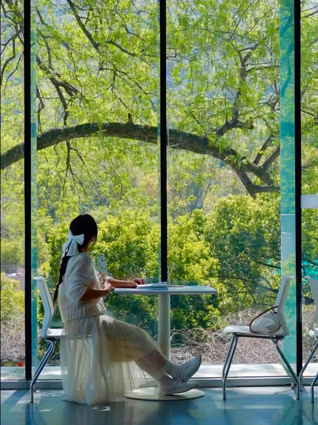 这里除了主题博物馆外,被我发现了一个小众赏春位置,在主楼的2F,落地玻璃窗外的美景我可以坐上一个下午~