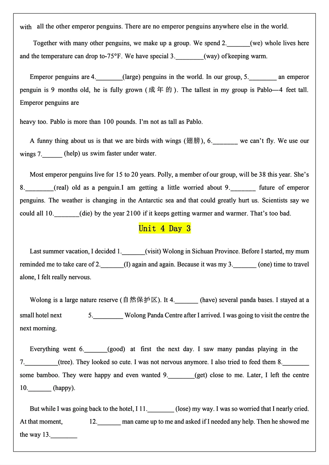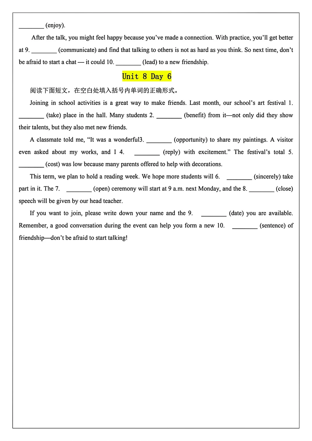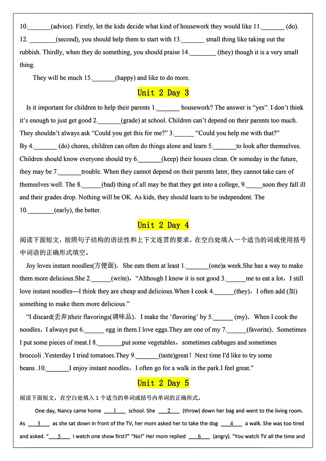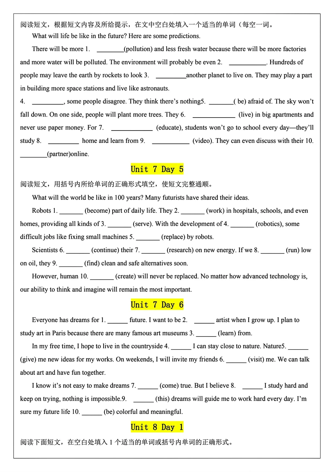 2025新版八年级上册英语语法填空