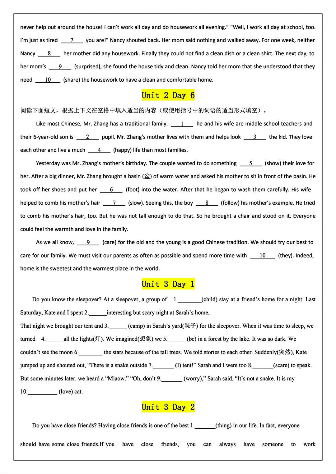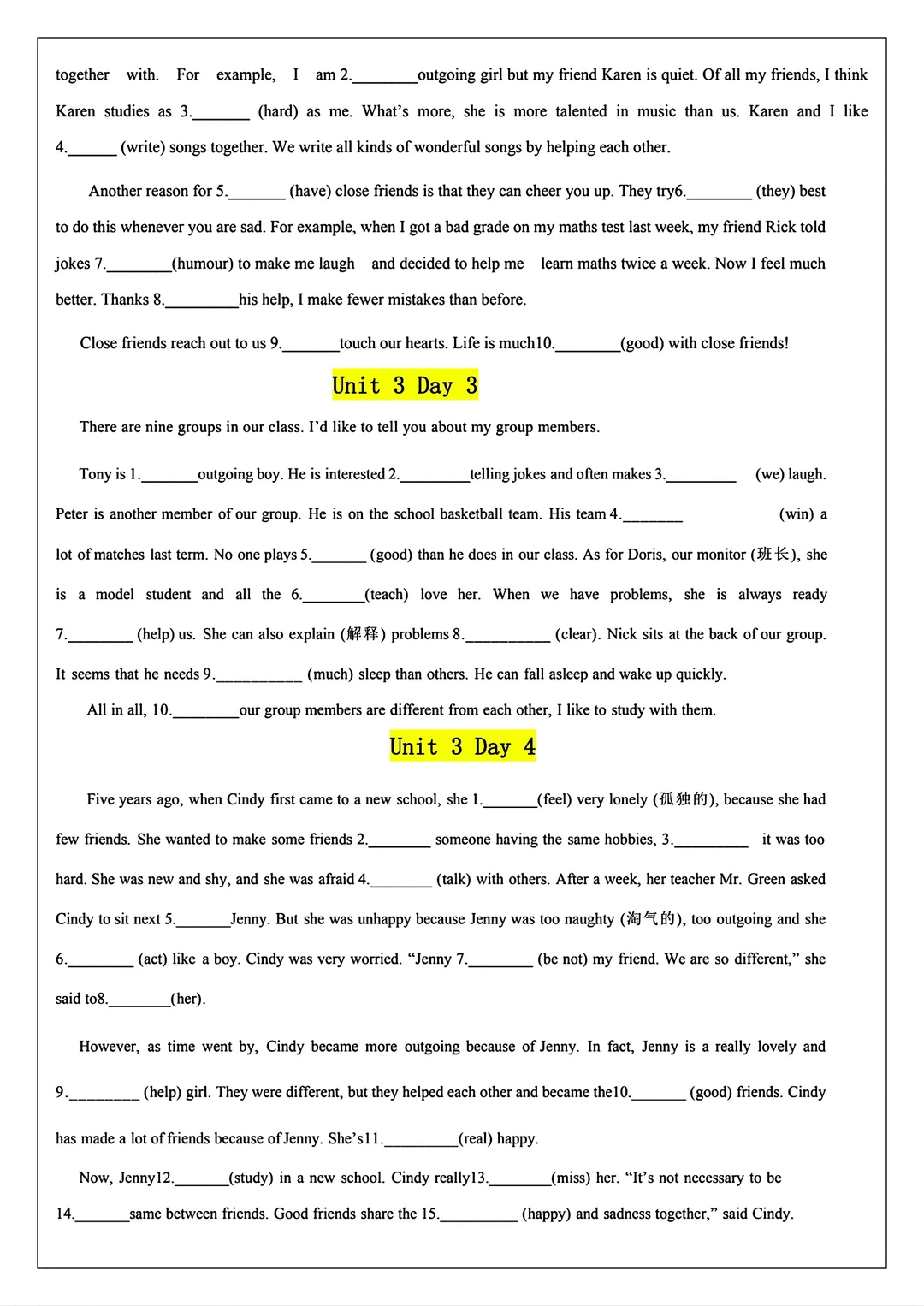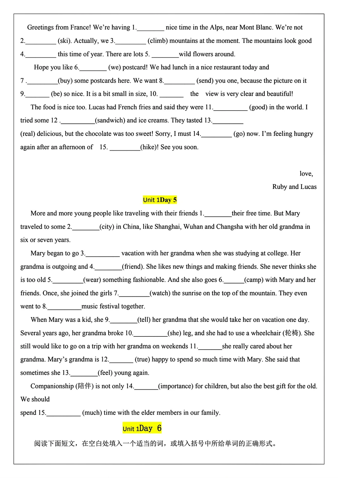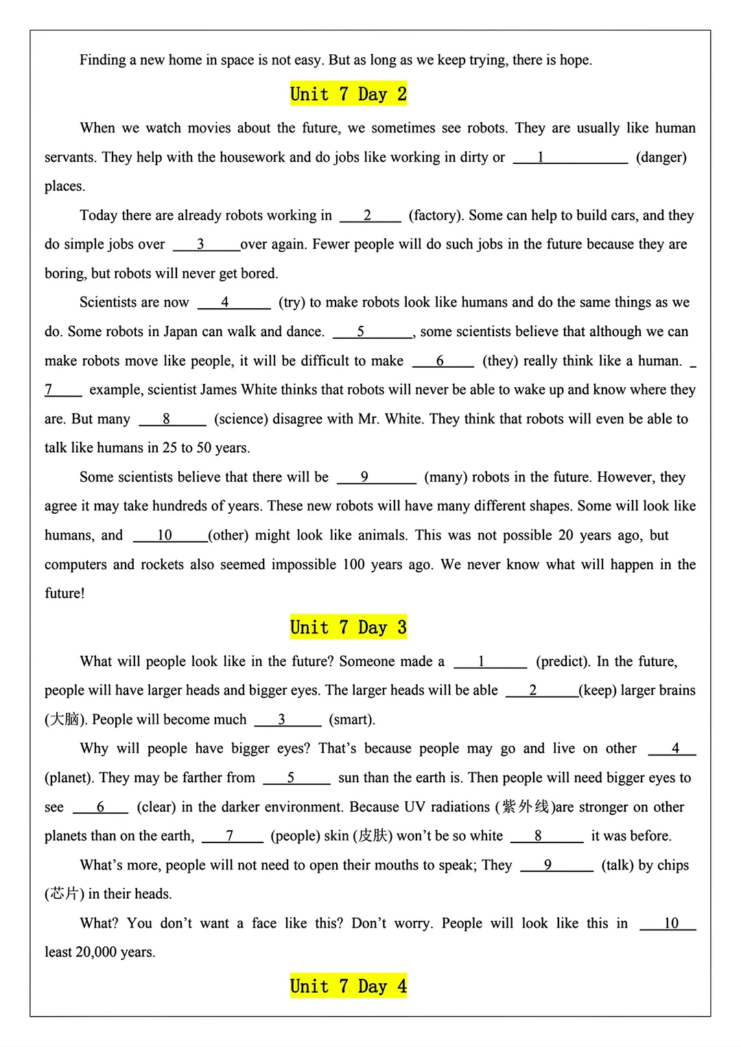 2025新版八年级上册英语语法填空