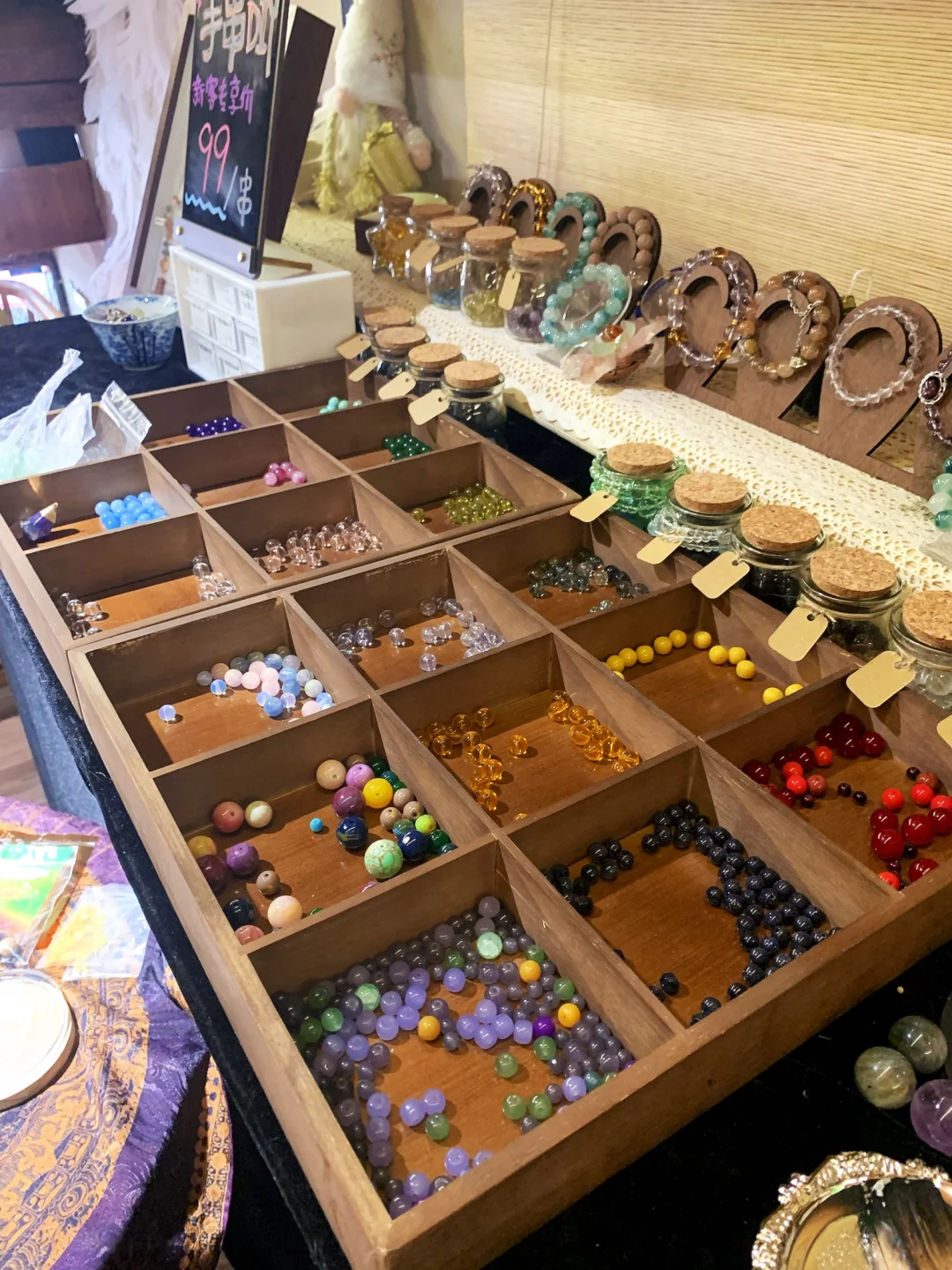 更惊喜的是,二楼还能亲手串水晶手串,挑上心仪的水晶珠子,DIY专属自己的幸运手链。