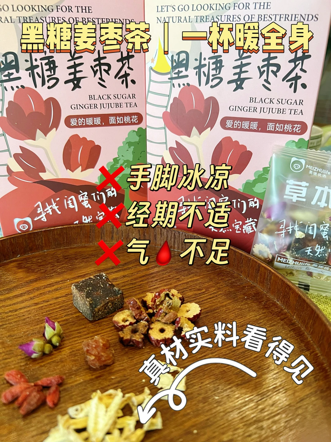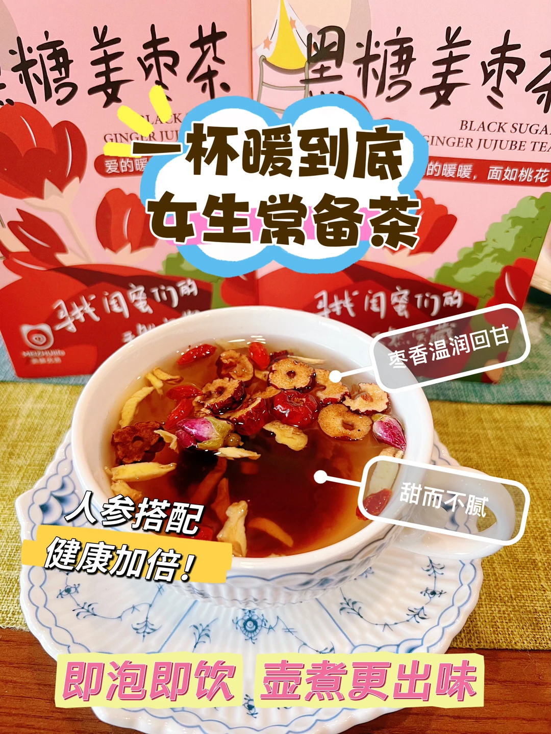 谁懂啊!一到春天就手脚冰凉、经期肚子痛、熬夜脸蜡黄的姐妹👀 这杯黑糖姜枣茶真的救我于水火! ✅ 真材实料看得见 黑糖+生姜+红枣+人参+玫瑰+枸杞 每一口都是食材本身的香气,没有科技与狠活! 泡开后枣香浓郁,甜而不腻,暖到肚子超舒服~ • 手脚冰凉、冬天/春天怕冷的宝 一杯下去,从肚子暖到脚,姨妈期再也不用蜷缩成虾! 坚持喝,素颜也能拥有红润桃花脸🌸