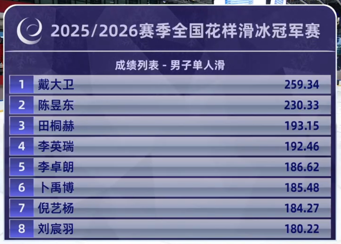 2025/2026赛季全国花样滑冰冠军赛 男单最终排名