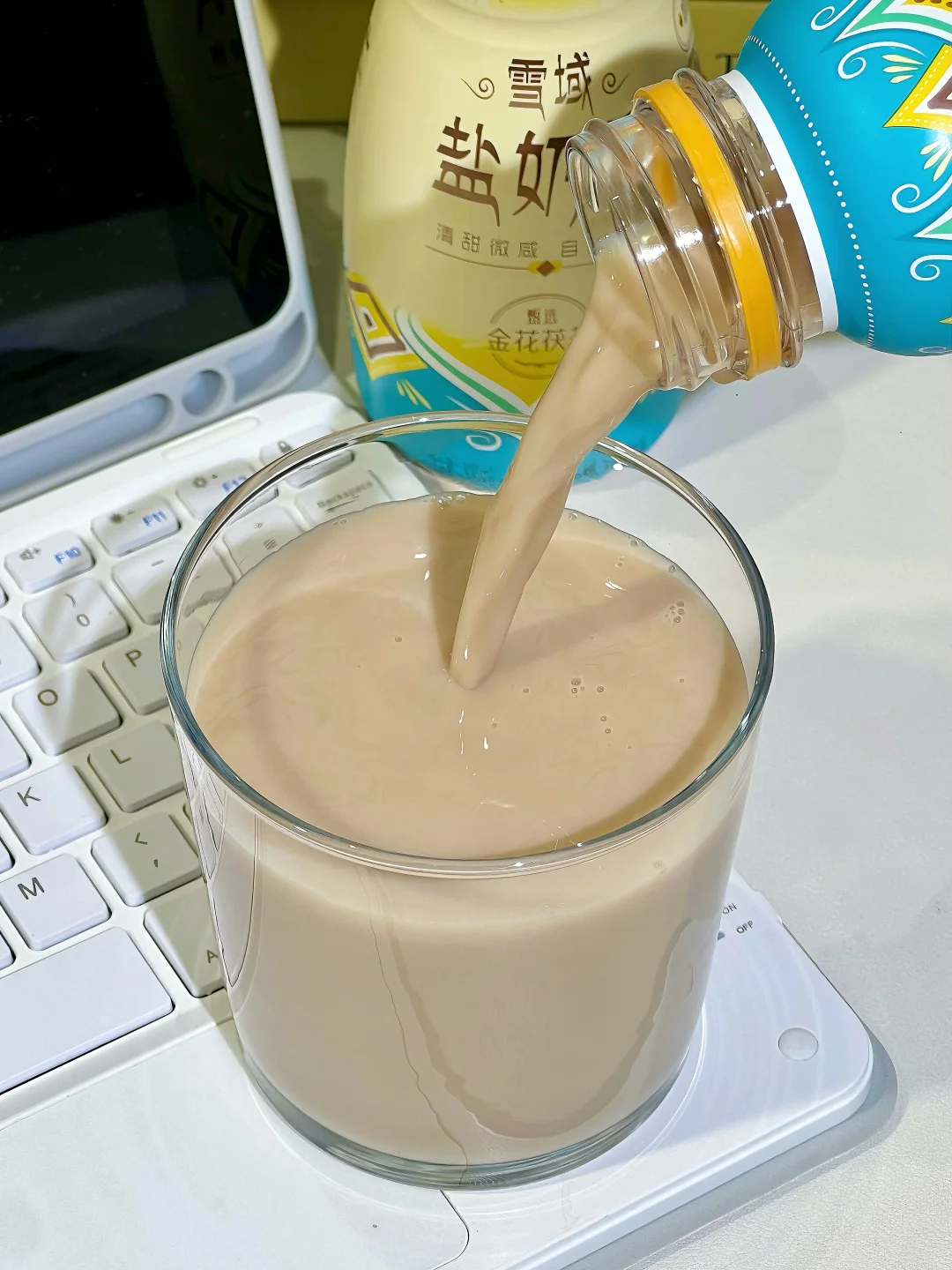 2️⃣倒入热乎乎的康师傅雪域盐奶茶