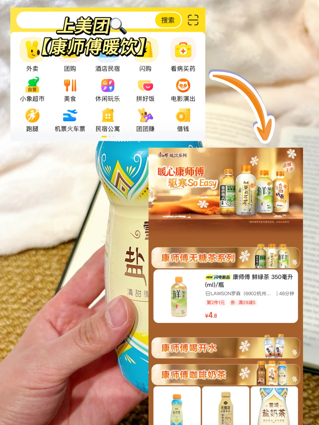 上美团🔍康师傅暖饮就能get热乎乎的暖饮,拿到手都还是热的!