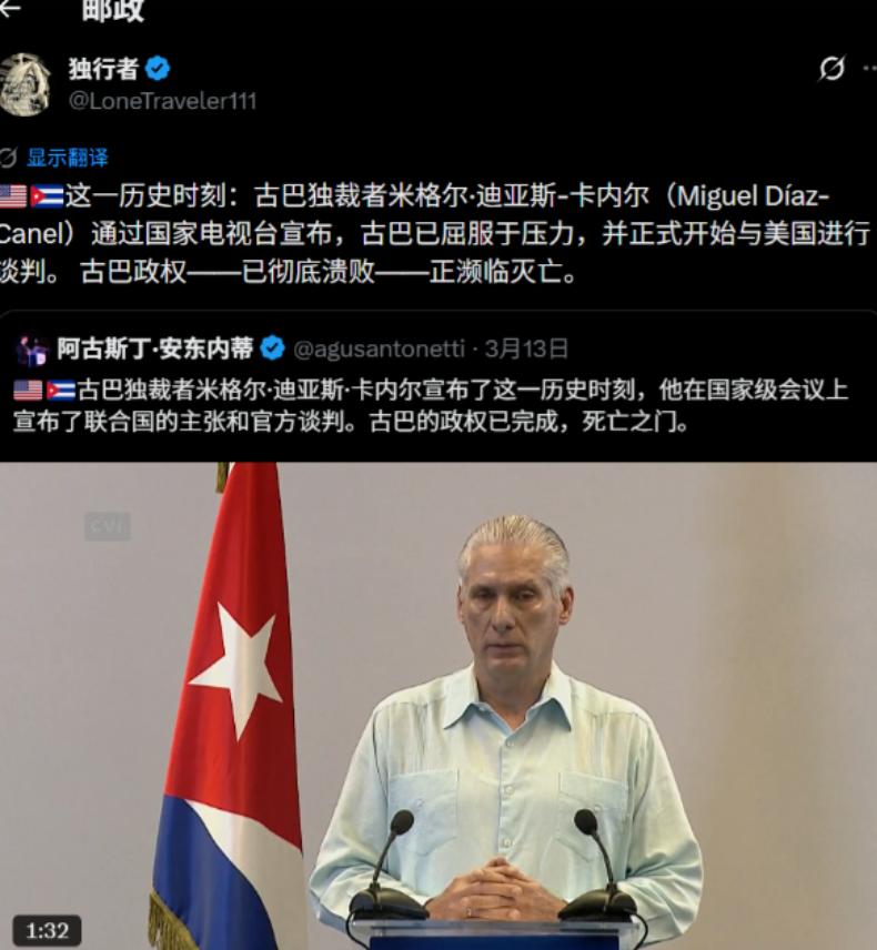 古巴已经顶不住了,总统卡内尔通过国家电视台宣布,屈服于美国压力要求,已经和美国进行谈判,并同意美国FBI进入调查(快艇事件调查)。