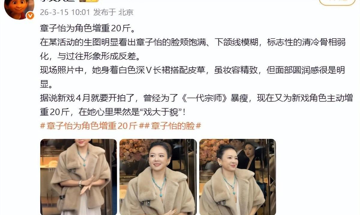 3 月 14 日北京这场 Tiffany 活动,简直就是内娱女星的“状态照妖镜”。章子怡一身白裙配皮草贵气十足,但脸圆了不少,坊间传闻是为新戏特意增重 20 斤;钟楚曦依旧稳,黑白紧身裙加大光明发型,审美在线;宋雨琦红发金裙明艳动人;唐嫣换装前后反差明显,虽略显疲态但底子仍在。男星方面,张若昀儒雅却难掩年龄差,李昀锐靠配饰出奇制胜。这群人往那一站,确实让人感叹“老天赏饭吃” isn't just a saying. 看到章子怡这变化,我反倒想给大伙泼盆冷水:别光盯着脸圆不圆瞎操心。如果真如传言所说,她是人为新角色“自毁形象”去增重,那这才是演员该有的狠劲!现在的娱乐圈太浮躁,太多人恨不得把“瘦”字刻在脑门上,哪怕戏里是个饿殍也得保持马甲线,这种敬业精神的缺失才是真可怕。章子怡都 47 岁了,敢于打破自己最标志性的锋利下颌线,去贴合角色,这份魄力比那张完美的脸珍贵一万倍。反观有些年轻流量,稍微换个发型就被吹上天,拍个哭戏眼药水都挤不出来。咱们观众有时候也被带偏了,过度审视女明星的颜值波动,却忽略了作品本身的厚度。要是这次增重量属实,等她新戏上映,恐怕今天这些关于“脸圆”的议论,都会变成日后赞扬她“剧抛脸”的伏笔。毕竟,能在名利场里为了艺术暂时放下美貌的女演员,才是真的值得瑞思拜。