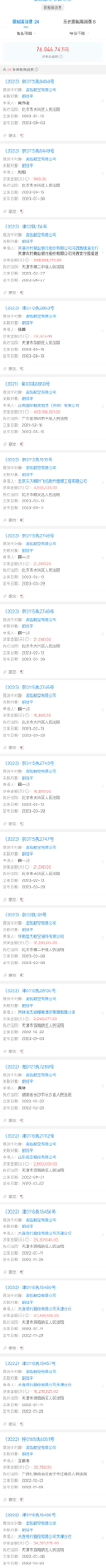 自2022年6月以来,这位法定代表人已经被实施24次限制高消费,涉案总金额达7.6亿元。