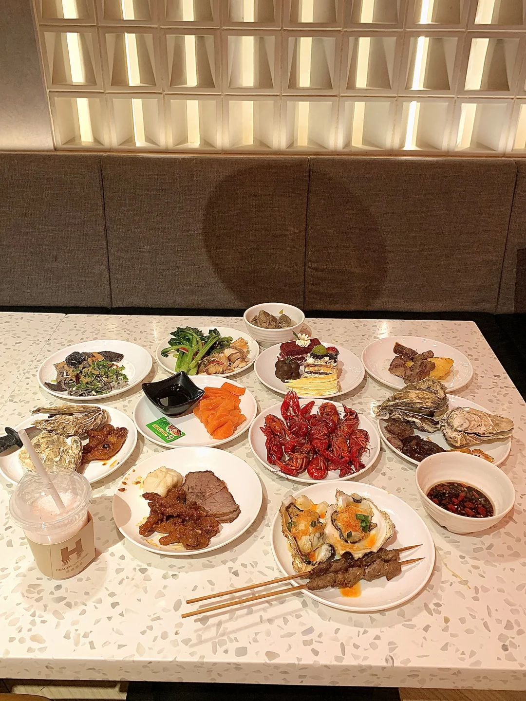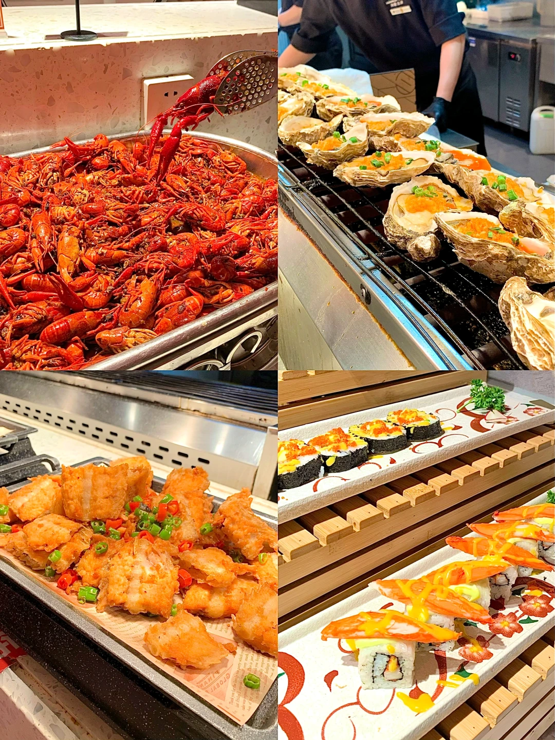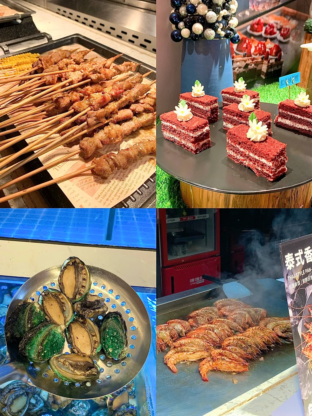 🍴自助餐种类超丰富:内蒙烤全羊、老北京爆肚、黑虎虾、扇贝、鲍鱼、三文鱼、金枪鱼、火锅等等