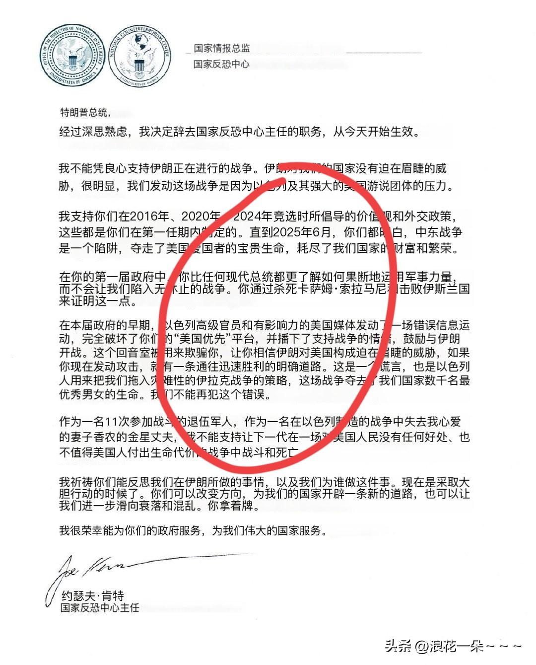美国国家情报体系反恐中心负责人 Joe Kent 给特朗普写了辞职信!(图二)