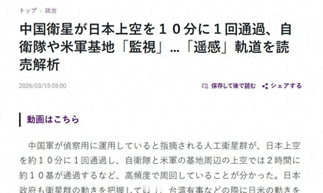 作为常年盯着航天动态的老军迷,看到日媒炒作的这个"10 分钟过顶”说法,我第一反应不是紧张,而是忍不住想笑:这就慌了?咱们这进度条才刚读了一半好吗! 咱把话摊开了说,最近日本《读卖新闻》搞得跟天塌了一样,援引什么美国太空军数据,说中国现在大概有 80 颗遥感卫星围着日本转,平均每 10 分钟就有一颗从头顶飞过去。特别是美军那个横须贺基地,一天能被扫射 60 次,有时候两小时就有 10 颗卫星排队过顶,甚至四颗卫星“叠罗汉”一起飞过。他们渲染得神乎其神,好像咱们把美日的底裤都看光了,人家在那儿“毫无秘密可言”。 其实稍微懂点行的都知道,这根本不是啥新鲜事。咱们国家在轨的民用遥感卫星早就超过 640 颗了,稳居世界第二。这些卫星也不是只会拍照的“傻瓜相机”,光学、红外、微波全都有,别说白天黑夜,就是云层遮得严严实实,照样能看得清清楚楚。日媒专门挑出北纬 35 度到南纬 35 度这个范围嚷嚷,因为这正好罩住了横须贺、佐世保、冲绳还有关岛这些美军要害。举个最直观的例子,美军航母就算拼了命跑,最高时速 30 节,10 分钟也就挪个 9 公里,可咱们“吉林一号”宽幅卫星一眼下去视野宽达 150 公里,航母想玩“躲猫猫”?门儿都没有!再加上现在的“三体计算星座”,直接把 AI 算力送上天,数据不用传回地面慢慢算,天上直接出结果,火情都能秒级识别,更何况是这么大的军舰机动? 讲真,作为在这个圈子里混了多年的老用户,看到日媒这幅“大惊小怪”的样子,我心里只有两个词:通透和解气。 咱们得把公道话摆在这儿:中国搞这么多卫星,初衷从来不是为了去监控谁,更不是什么“控制全场”。咱们的卫星大头都用在环境治理、农业监测、防灾减灾这些民用途上了。说白了,是你美日自己心里有鬼,非要在我们家门口频繁搞军事部署、搞联合军演,天天想着围堵我们,那你的兵力调动、舰船停靠自然就在我们的观测范围内了。这就好比我在我家阳台上装了个高清摄像头防贼,结果小偷反过来说我侵犯他隐私,这逻辑不荒谬吗? 以前美国人靠着自己的卫星体系满世界 spying,支持这个打击那个,怎么轮到自己被别人看着的时候就急眼了?这就是典型的双重标准。而且日媒炒作这个“没有秘密”,其实是他们自己对技术迭代的恐惧。现在的战争早就不是一二战那种拼刺刀了,俄乌和中东的局势已经证明,天基侦查加上 AI 处理,配合高超音速武器,那就是降维打击。他们害怕的不是被看见,而是害怕一旦真有事儿,他们的防空反导系统在我们眼里就像透明的一样,根本藏不住。 所以啊,别听外媒瞎忽悠什么“中国威胁”,咱们发展高科技是为了保卫和平,是为了让自己不受欺负。如果美日真的觉得“没有秘密”很难受,那最简单的办法就是别总在亚太兴风作浪,别总把枪口对准别人。只要身正,还怕影子斜? 最后想问问大家,对于这种“只许州官放火,不许百姓点灯”的双标行为,你们觉得接下来美日会不会搞出什么更可笑的动作来回应?评论区咱们聊聊!