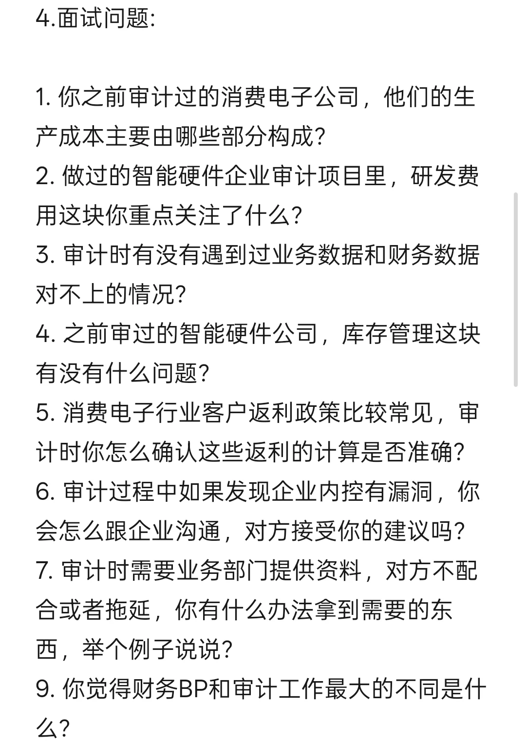 9. 你觉得财务BP和审计工作最大的不同是什么?