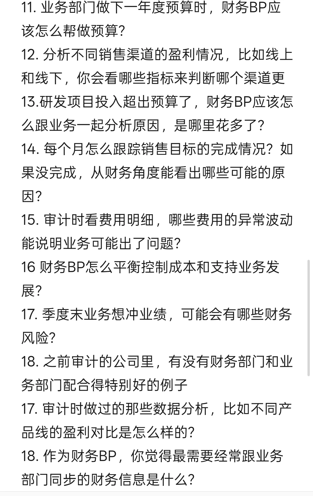 18. 作为财务BP,你觉得最需要经常跟业务部门同步的财务信息是什么?