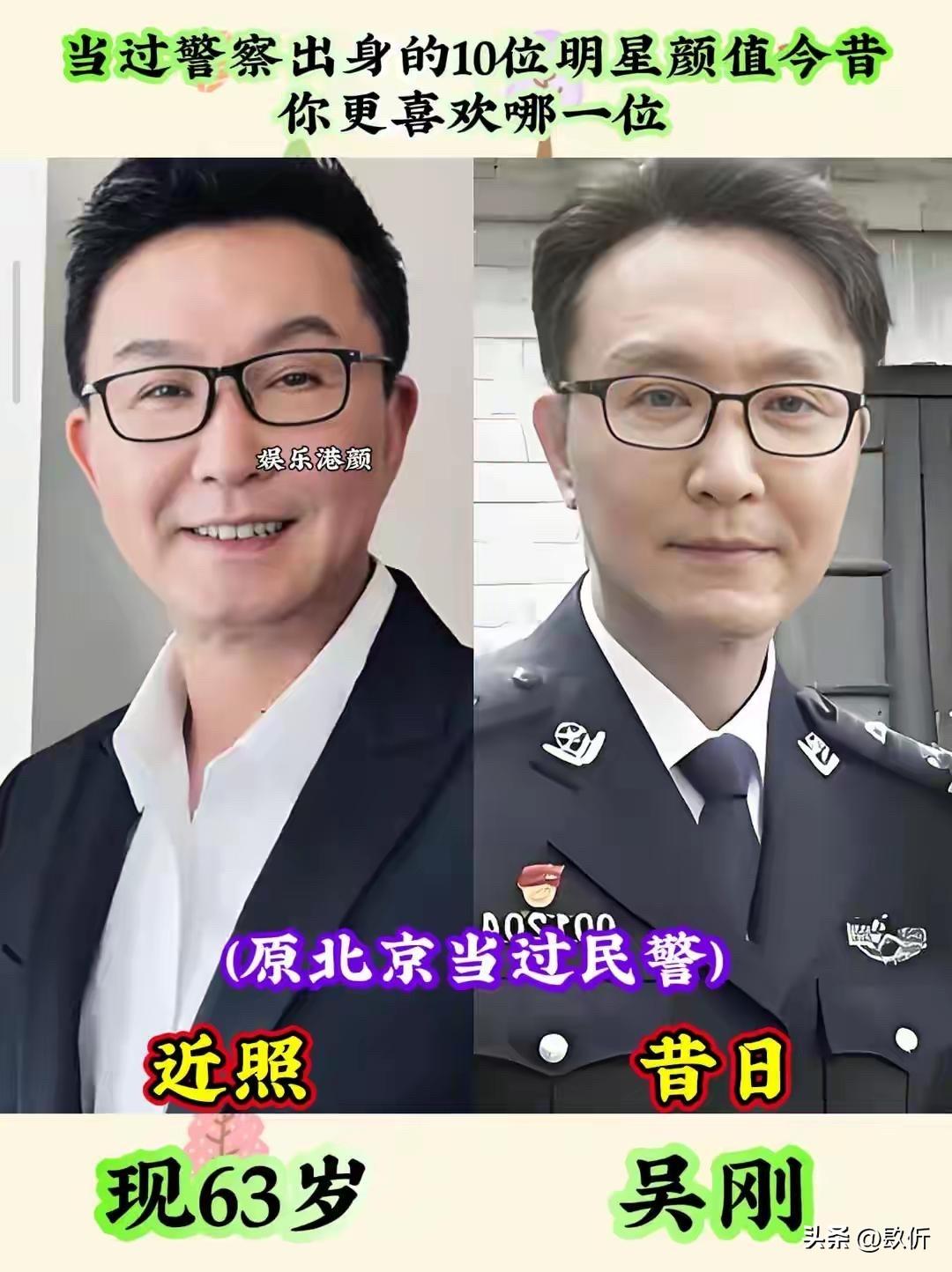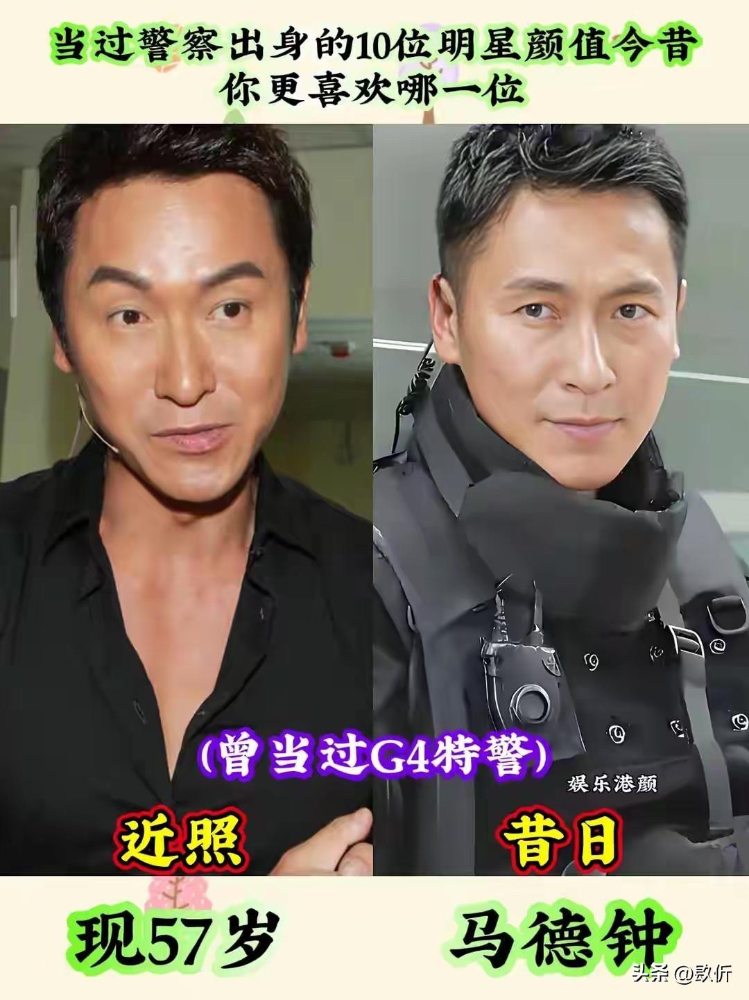 当过警察的10位明星今昔对比:不光是演警察,人家是真当过 他们有的当过G4特警,有的当过警察通讯员,有的从皇家警察学校毕业,有的当过钓鱼台警卫。都是真当过警察的。 后来他们转行当了演员,有人成了影帝,有人成了视帝,有人成了古装男神,有人成了TVB熟脸。可不管成了多大的明星,他们身上那股子警察的劲儿还在。