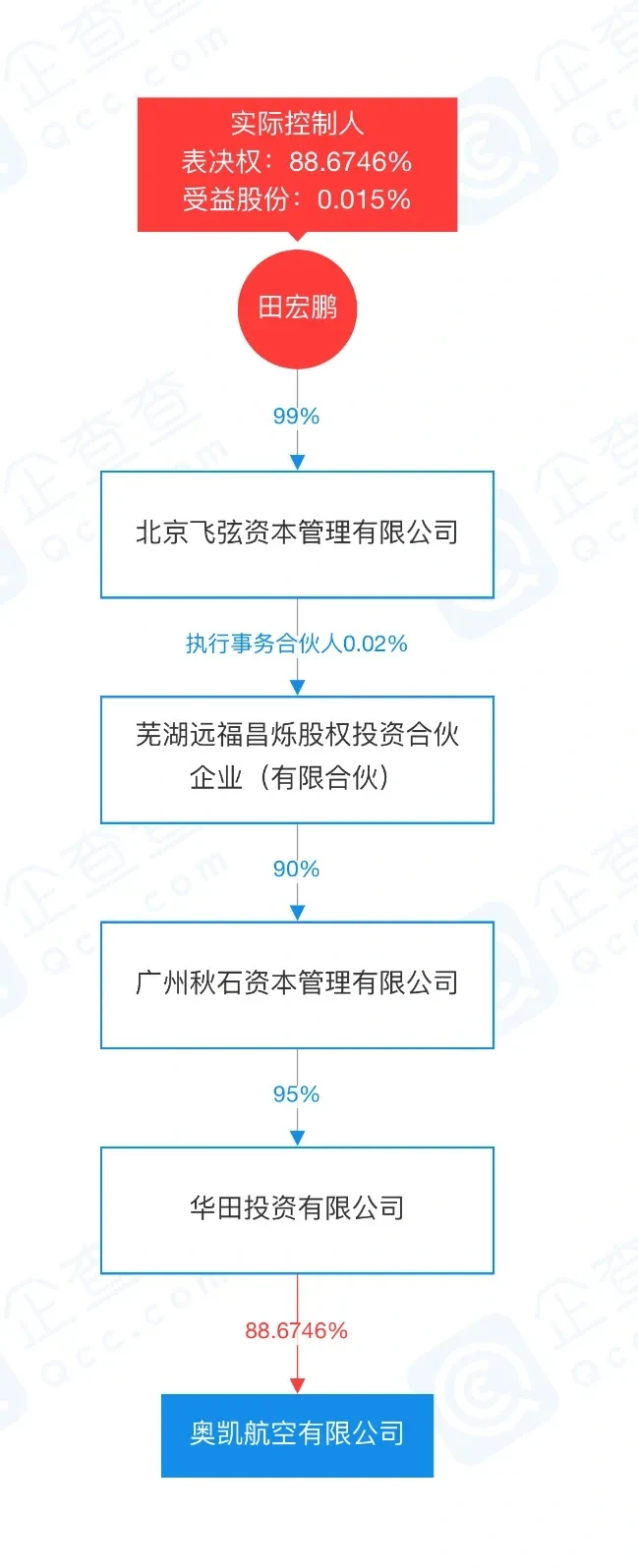 而芜湖远福昌烁股权投资就是奥凯航空的间接控股股东。