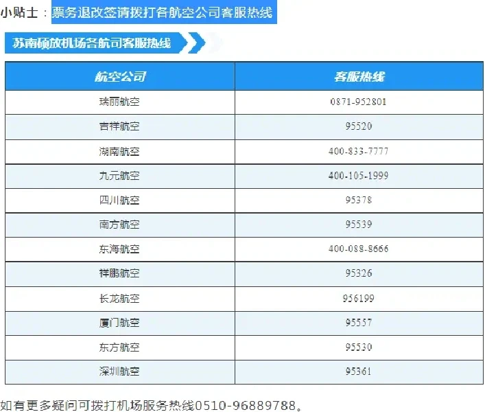 值得玩味的是,硕放机场在提供航空公司退改签热线电话时,排序是这样的: