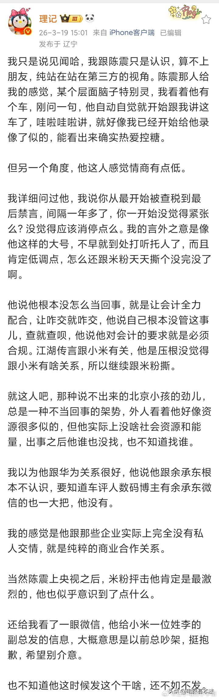 理记还说陈震非常聪明,就是情商有点低,不愿意掺和复杂的人际关系,不热衷培养人脉,因此实际上陈震没什么社会资源和能量。