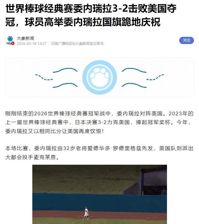 3 月 17 日夜,迈阿密钻石球场见证奇迹。不被看好的委内瑞拉队,在九局下由苏亚雷斯一击绝杀,2 比 反超东道主美国。次日,代总统罗德里格斯签发行政令,全国非必要停工断电,只为这场胜利狂欢。体育超越政见,让割裂的国家短暂和解。 瞅见没?这才是棒球该有的样子!概率算得再精,也算不出人心的爆发力。那场对意大利的绞杀战早就埋下伏笔,全是血肉磨出来的底气。 说白了,这一杆子打碎的不仅是比分牌,更是压在两千万人头上的憋屈。平时为生计发愁,此刻谁还管明天米价涨不涨?这种宣泄比啥救命药都管用。 别天真以为一场球能治百病,但这剂“麻醉针”打得真到位。连平时势同水火的政敌都能举杯共饮,这不就证明尊严才是最大公约数? 哪怕明天日子依旧苦大仇深,至少今晚大家都是挺直腰杆的委内瑞拉人。这根“救命木棍”,哪怕只能撑一宿,也够大伙儿借着光再熬一阵子了。