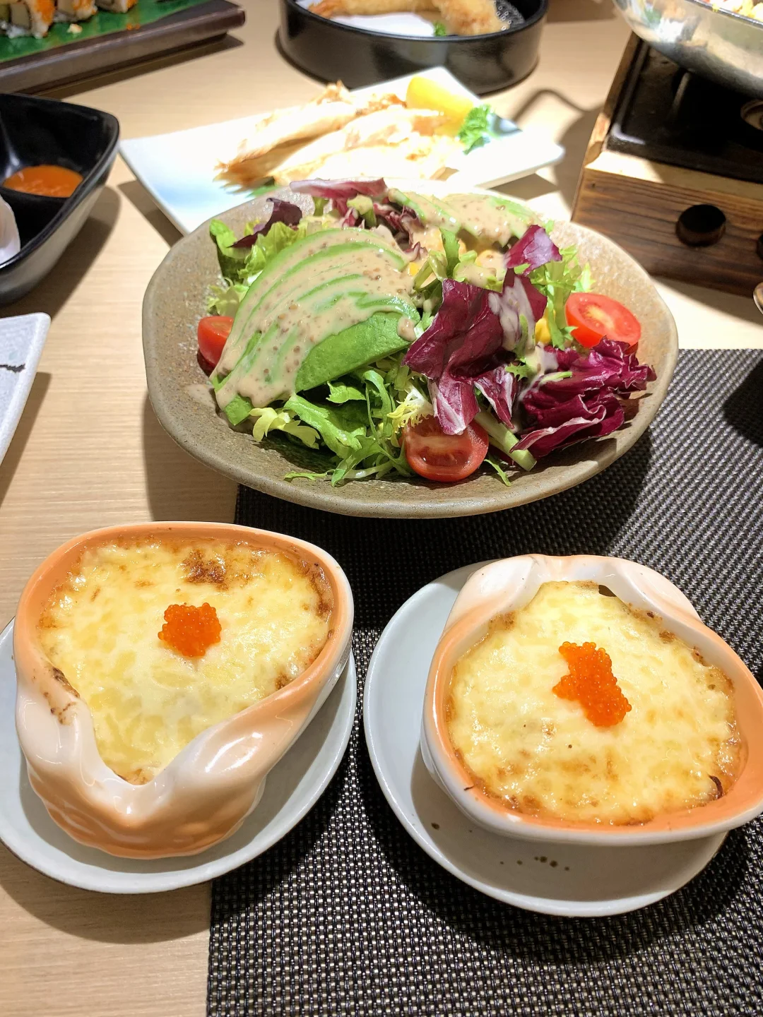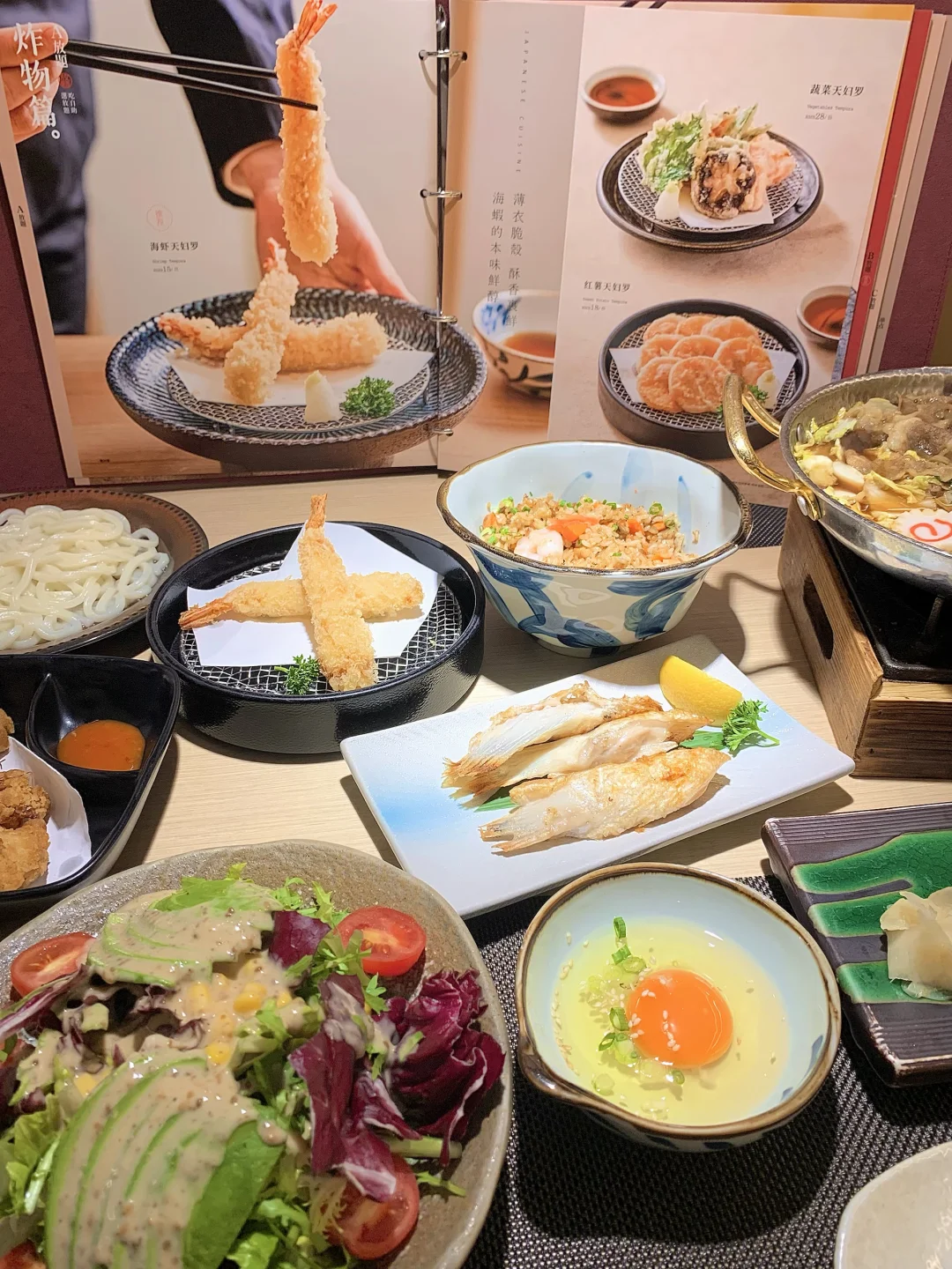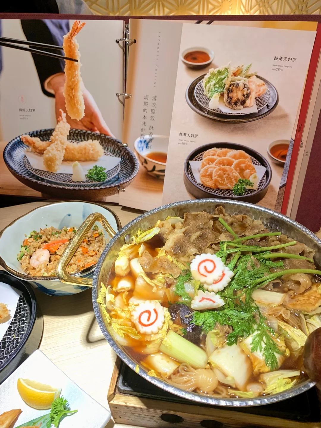 🍃必点闭眼冲:和牛寿喜烧锅、海鲜焗蟹宝、德川家沙拉、唐扬鸡块、三文鱼海鲜炒饭
