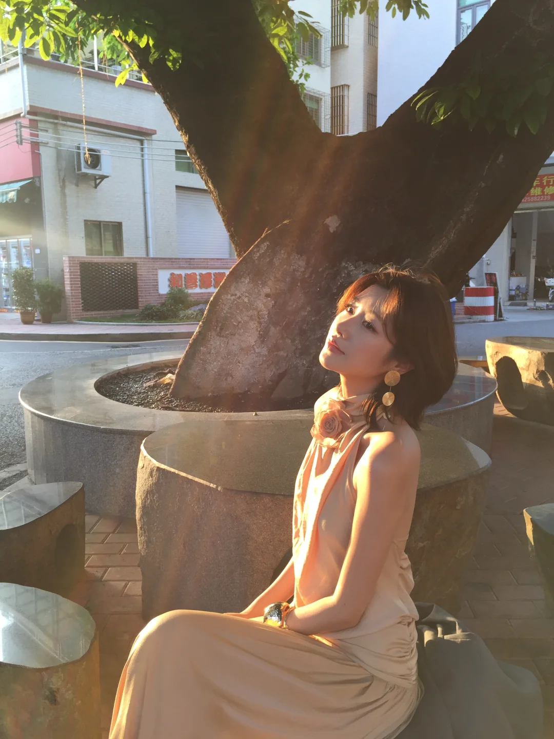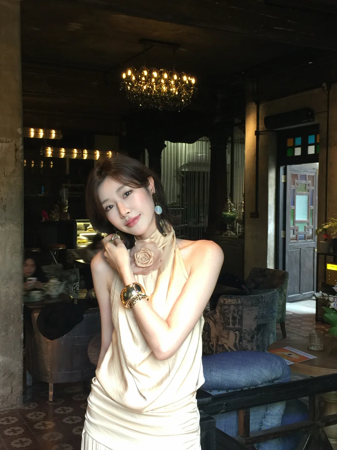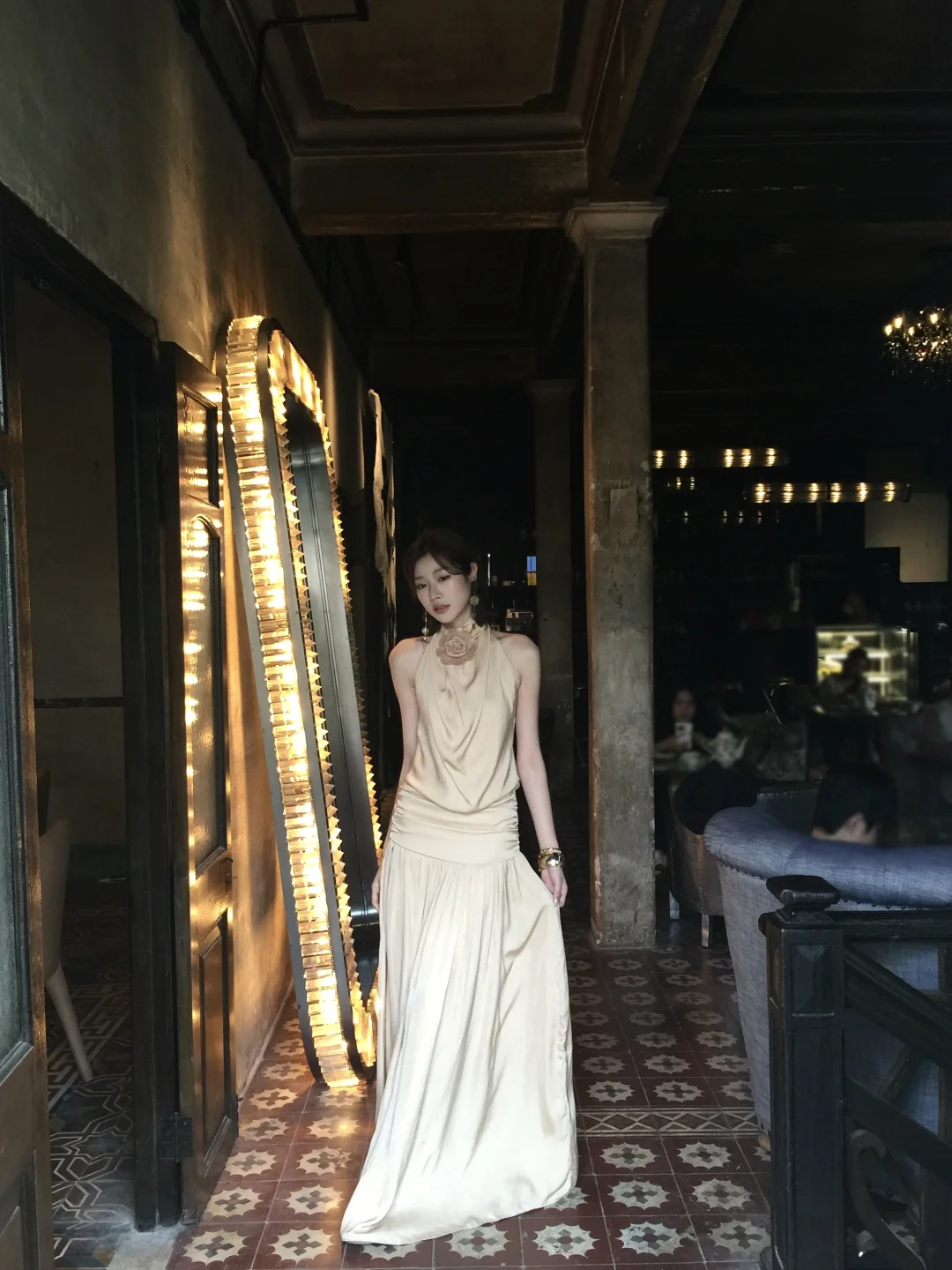 高个子穿搭 极简穿搭美学 ootd 氛围感拍照 潭州大洋楼 咖啡厅拍照 连衣裙 挂脖连衣裙