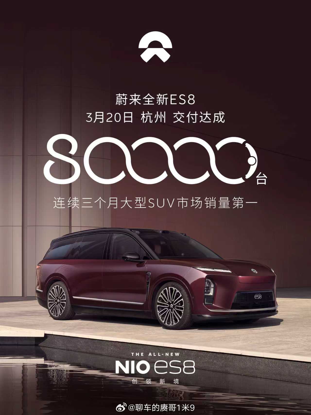 蔚来ES8!交付八万台了历时不到半年,太快了!目前家用纯电大六座最佳选择星云红的新配色这个月上新好看估计下个月销量还能涨涨赓言赓语蔚来
