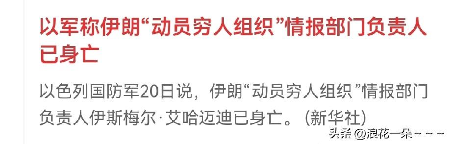 说句实话,真不知道美国和以色列投入了多少资金用于对伊朗对情报工作上。这不,就在刚刚又遇难了一位——“动员穷人组织”情报部门负责人已身亡。 这接二连三的有伊朗高官死亡,这背后要不是情报的力量,鬼才相信。 我在猜呀,除了以色列自己的情报人员,估计也是下了血本培养策反伊朗本国人员给以色列提供情报,说白了钱到位就有人去冒险,伊朗已经逮捕了那么多人就是证明。