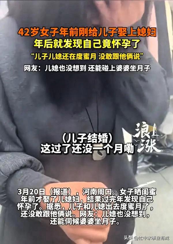 前脚刚办完儿子婚礼,后脚婆婆自己去验出了两道杠。 河南周口这出家庭魔幻大剧,真