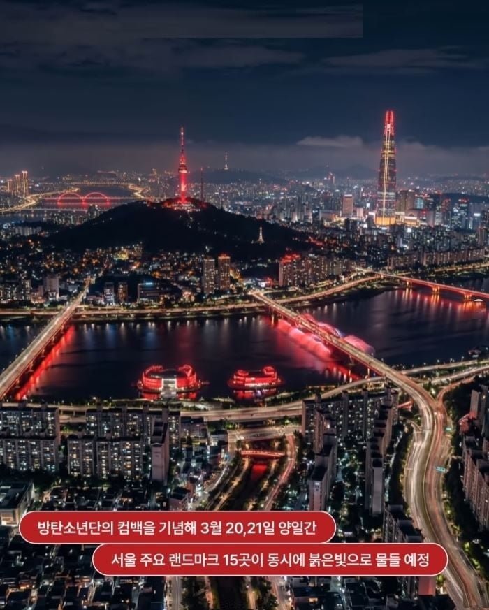 迎来BTS回归,今天会全部变成红色的首尔地标建筑