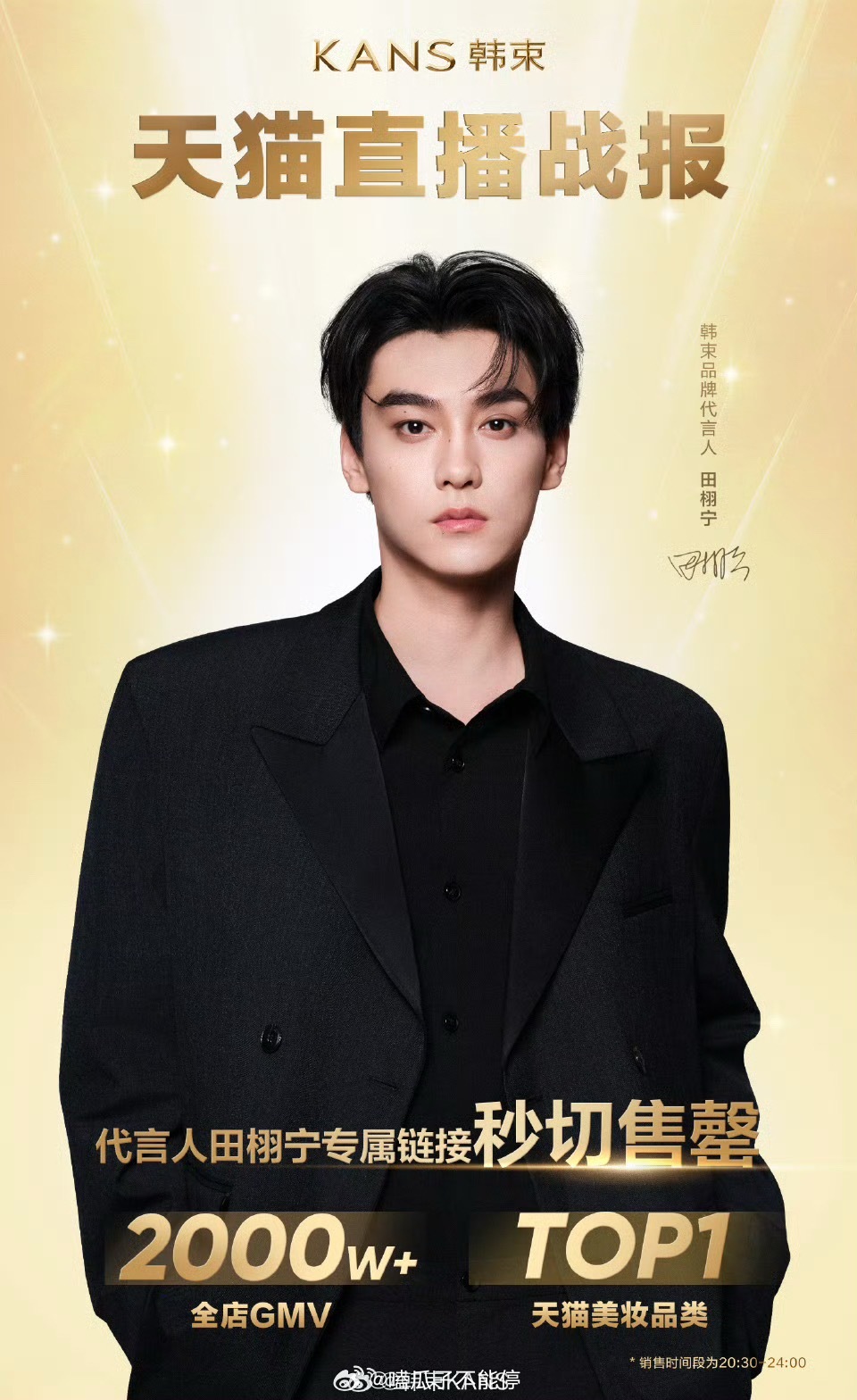 田栩宁韩束直播销售额韩束官方发了战报,这个数据田栩宁和粉丝都有点厉害啊