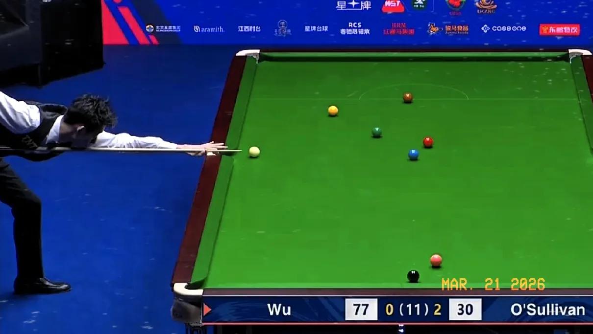 81-30,吴宜泽扳回一局,比分追到1-2暂时落后。 火箭第2局单杆50+,一杆制胜,比分带到2-0领先。 第3局,吴宜泽开局强攻长台不进,又给奥沙利文提供先上手进攻机会,但奥沙利文又是仅拿30分,进攻失误将进攻权转让。 吴宜泽稳住心态,稳定发挥,打出单杆77分,超台面分12分。 火箭看来是志在必得,搁以往根本不会上台纠缠,这回却上阵尝试追分翻盘,几个回会后,漏机会给吴宜泽,丢了一局。