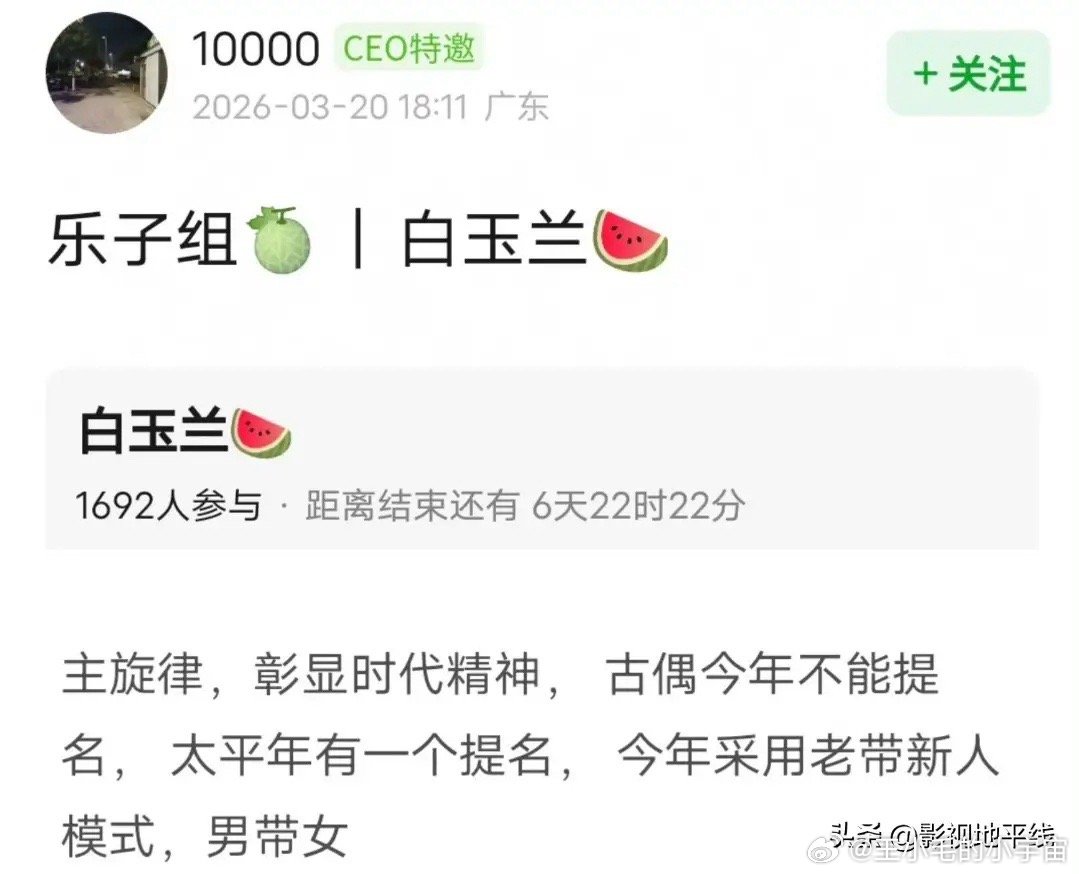 白玉兰奖又传出所谓的大瓜,大概意思就是奖项会采用以老带新的模式,最佳女主角会颁发给没拿过奖的新人。