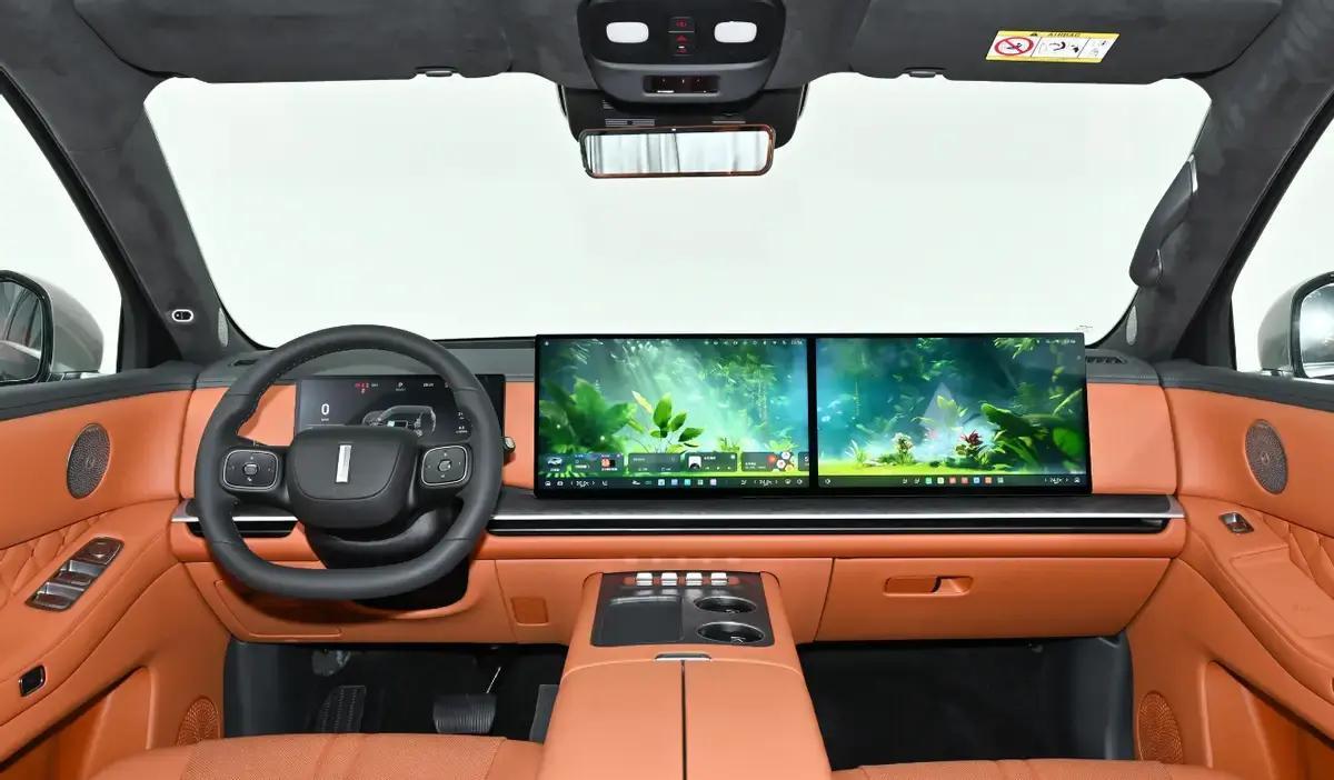内饰直接上17.3英寸超大液晶联屏,几乎霸占整个中控,空调出风口被迫藏到下方,视觉冲击力比理想L9双联屏还猛。实车已看到车载冰箱、二排可翻转娱乐屏这些旗舰标配,舒适娱乐配置基本对标50万级主流水平。 动力全系超级Hi4插混,2.0T发动机175kW,系统综合输出拉到4.4秒破百,馈电状态也能4.7秒,属于这个价位主流顶格。WLTC纯电363km,对应CLTC轻松超400km,5分钟补能200km续航,800V高压平台加持。底盘更有后轮转向+闭式双腔空气悬架,转弯半径仅5.1米,驾乘质感预计有惊喜。