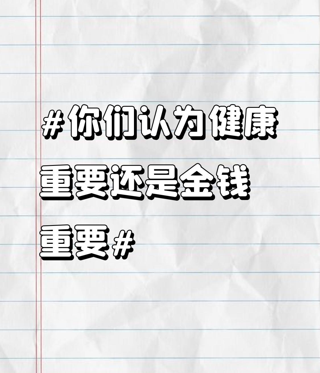 健康和金钱哪个重要,这就像先有鸡还是先有蛋一样让人纠结。健康是生命的载体,没了健康,金钱、事业啥的都成了浮云。世界卫生组织研究表明,健康对幸福感的贡献率高达70%,远超财富的20%。可金钱也不可或缺,它是健康的保障,没钱可能连病都看不起,贫困会直接威胁健康。 青年时期,身体好但常为了赚钱忽视健康,这时候得在保证健康底线的前提下追求财富。要是非得选一个,我站健康,毕竟没了健康,有再多钱也享受不了。但理想状态是二者兼得,守护健康的同时创造财富。