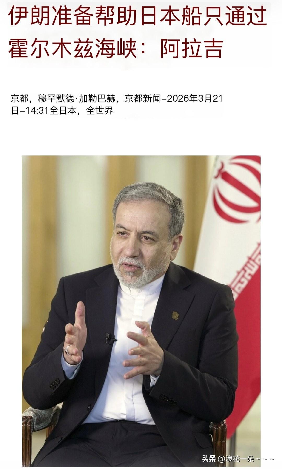 3月21日, 据共同社报道:伊朗随时可以让日本船只通过霍尔木兹海峡。 据悉,20日伊朗外长阿拉格齐接受该社电话采访时表示,德黑兰已开始同东京方面进行磋商,并与日本外长茂木敏充进行会谈,讨论重新开放霍尔木兹海峡的可能性。 值得注意的是,阿拉格齐曾担任伊朗驻日本大使!他进一步指出,伊日关系友好,德黑兰希望东京能在结束其他国家对伊朗的不公正与非法“入侵”方面发挥作用。 分析人士认为,由于准备在霍尔木兹海峡采取重大行动。而日本绝大部分石油运输都依赖霍尔木兹海峡,是日本能源重要渠道,目前日本已经动用石油储备,如果接下来运往日本的油轮还卡在霍尔木兹海峡,那必将对日本经济产生重大影响。