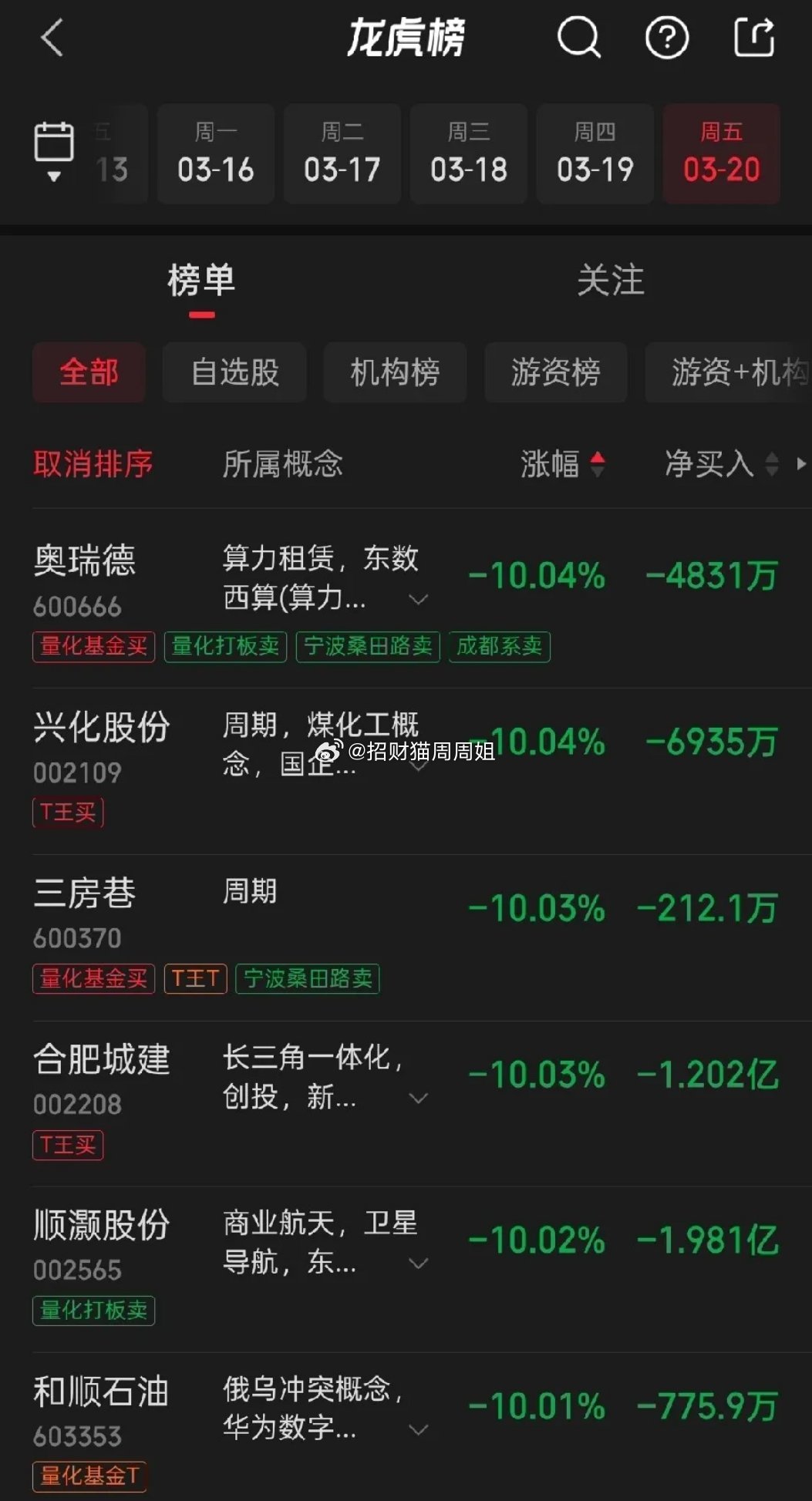 游资彻底投降!量化机器人已经在A股完胜人类,下一步怕是要接管整个市场!1. 游资大佬流沙河3月16日公开“降书”,昔日短线荣光不再,净值一路暴跌。2. N周二、花呗哥等一线游资相继认输,小方神更是半个月暴亏8000万。3. 章盟主折戟星环科技,陈小群席位彻底消失,老牌游资全线溃败。现在的龙虎榜,还能看到几个熟悉的游资身影?游资成交量不足巅峰三成,市场已经被量化彻底占领。量化主导的票,当天再强,次日必砸盘。首板、接力、龙头战法……所有人类短线套路,全被算法反杀。2026年量化到底进化到了什么程度?已经强到碾压所有顶级游资,成为市场新的“不败神话”了吗?