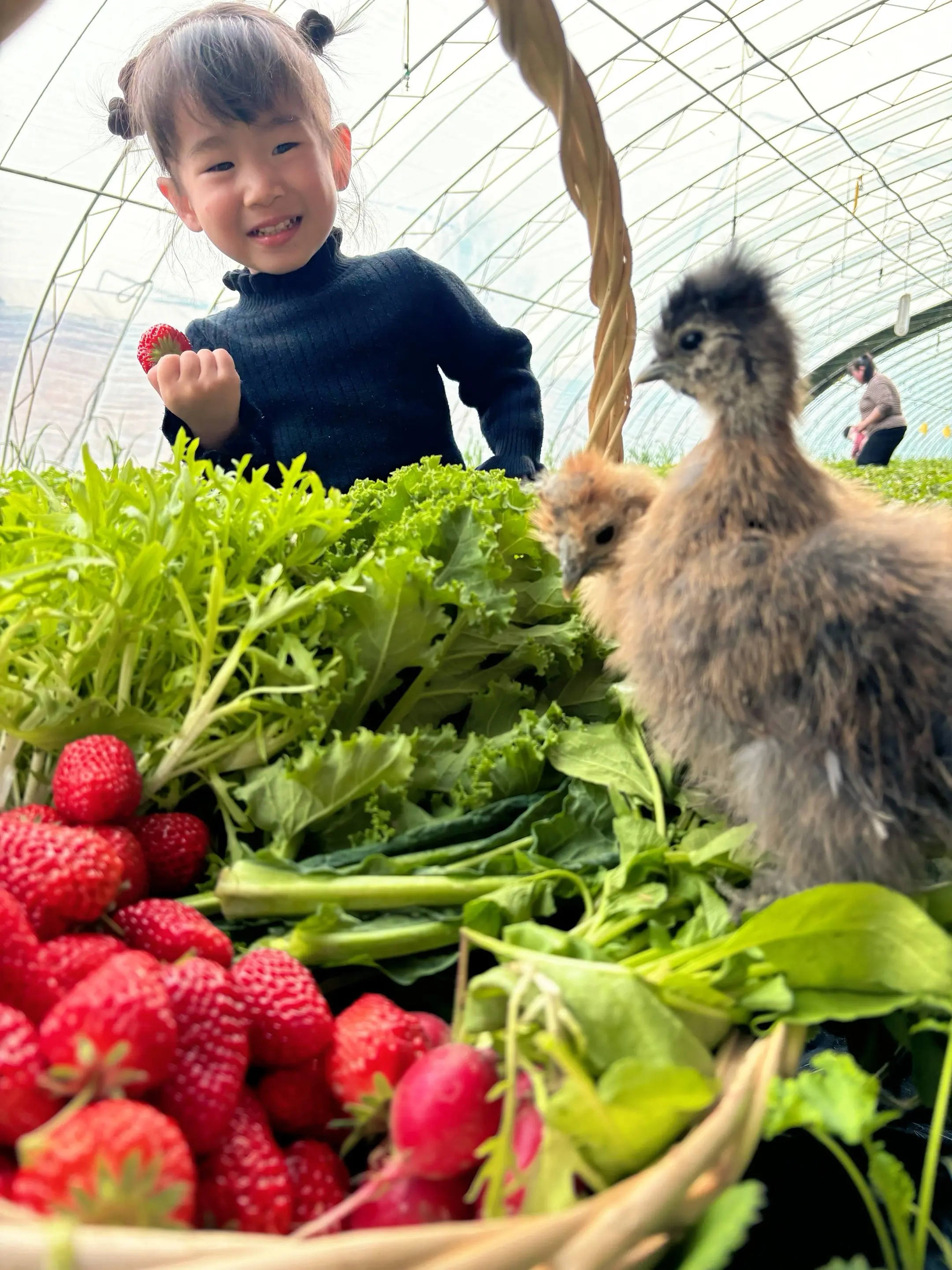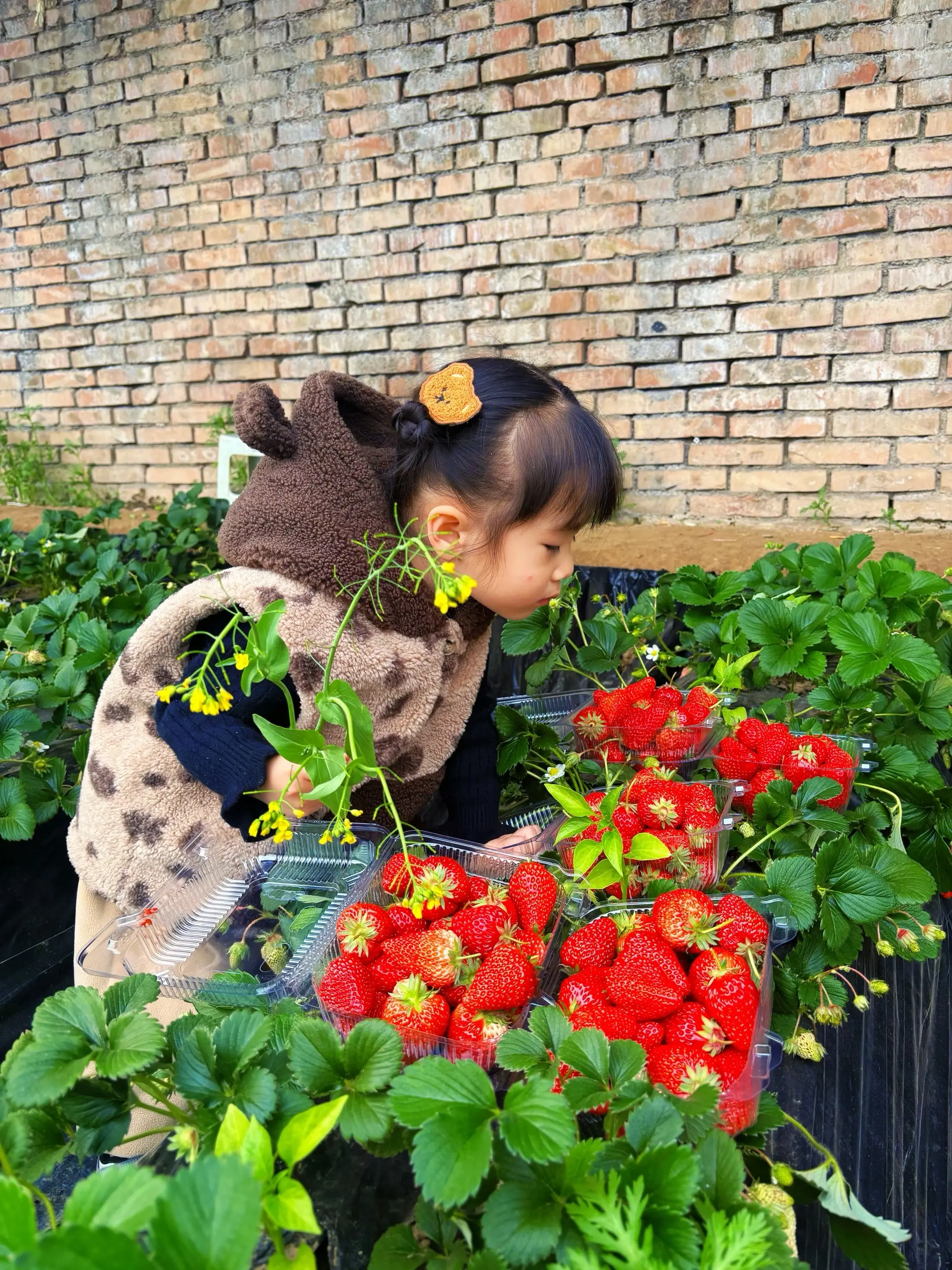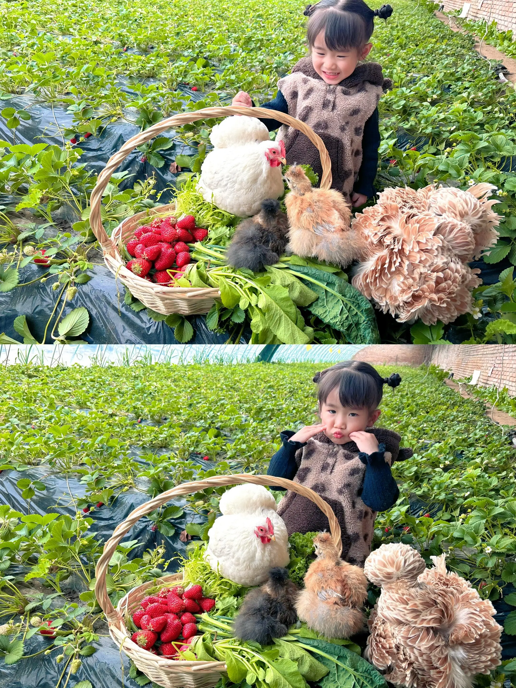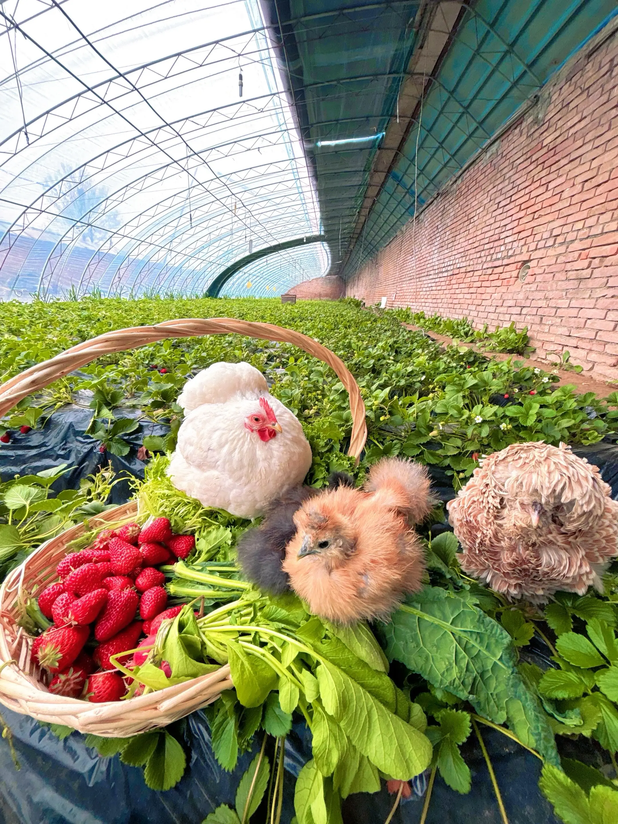 周末亲子时光,草莓棚撸鸡。一边遛鸡一边摘草莓,仅需18元1斤