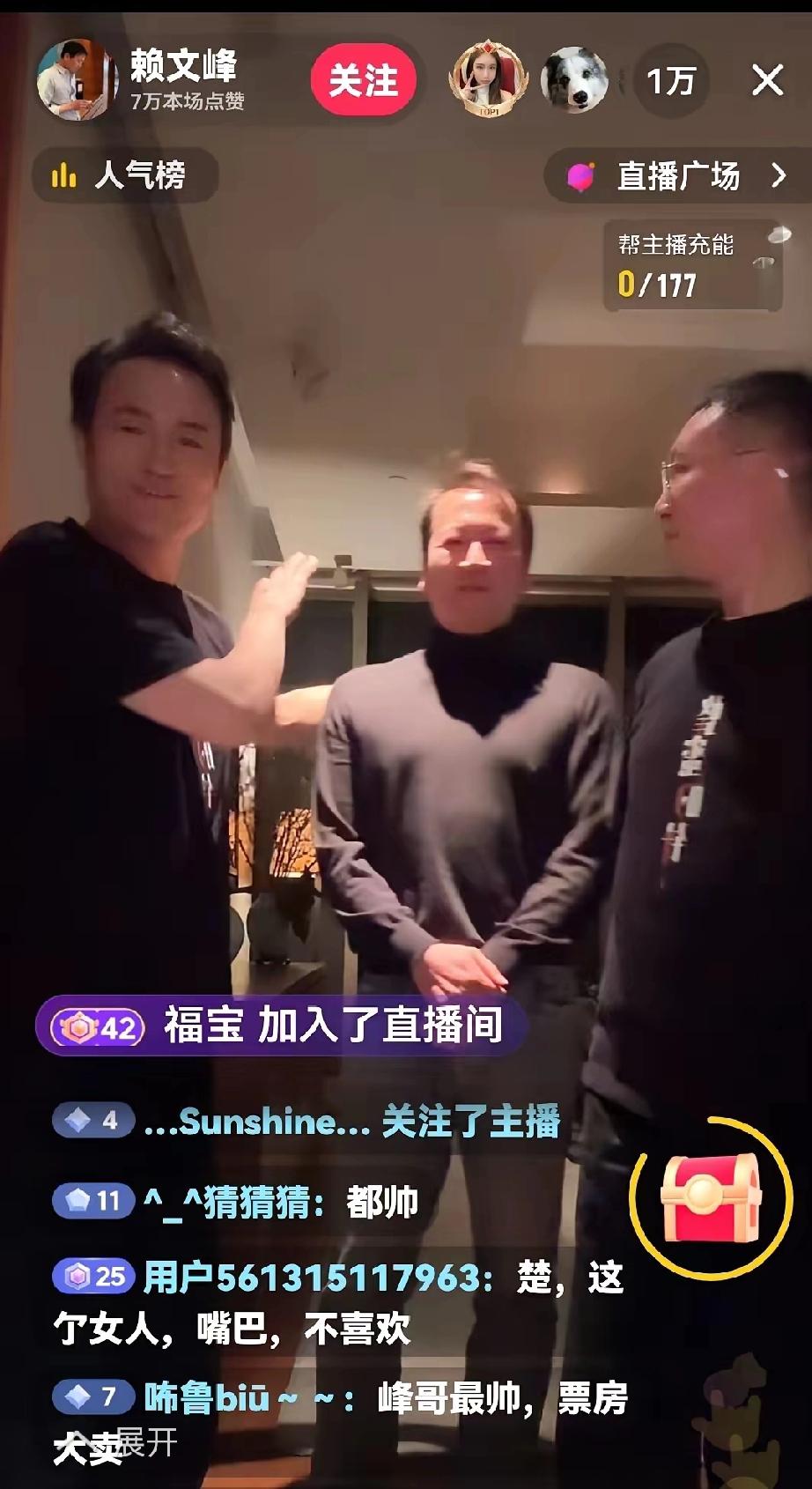 大佬赖文峰邀请演员兼好朋友耿乐,首次用自己的号开启了直播! 这是赖文峰首次独立直播,还邀请了好朋友耿乐,耿乐是位知名演员,前段时间刚和宁静,余飞鸿一起拍了电影《蜂蜜的针》,看来赖文峰的人脉还是很广啊,毕竟曾经也是大佬! 看来赖文峰这是想借着好朋友耿乐和电影《蜂蜜的针》正式开启直播出道了! 好多粉丝都是出于对赖文峰的好奇,直播间一会工夫就涌入了一两万人在线观看,有人提起杨钰莹,赖文峰都视而不见,看来赖文峰和杨钰莹的这段感情,已经随着时间的流逝慢慢变淡了!赖文峰也不再执着和纠结那段过往了!
