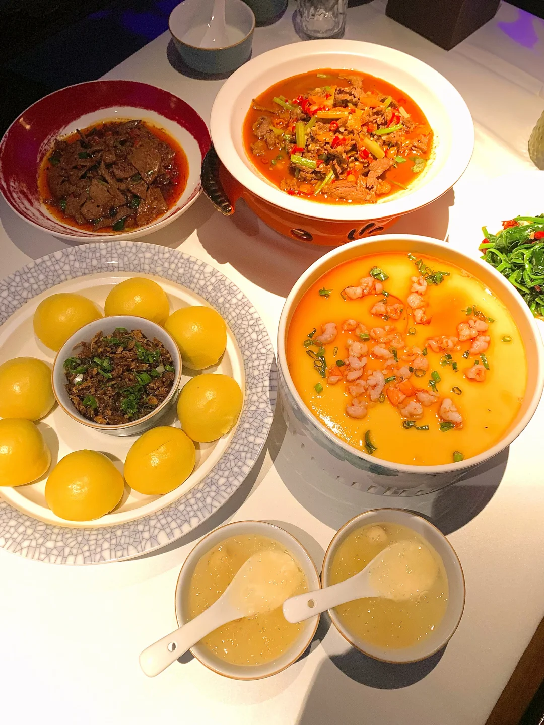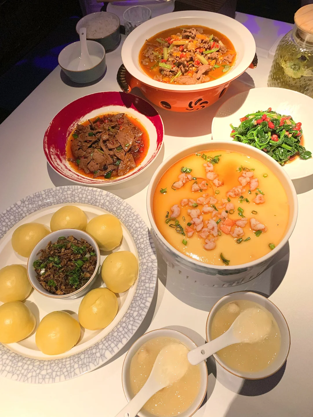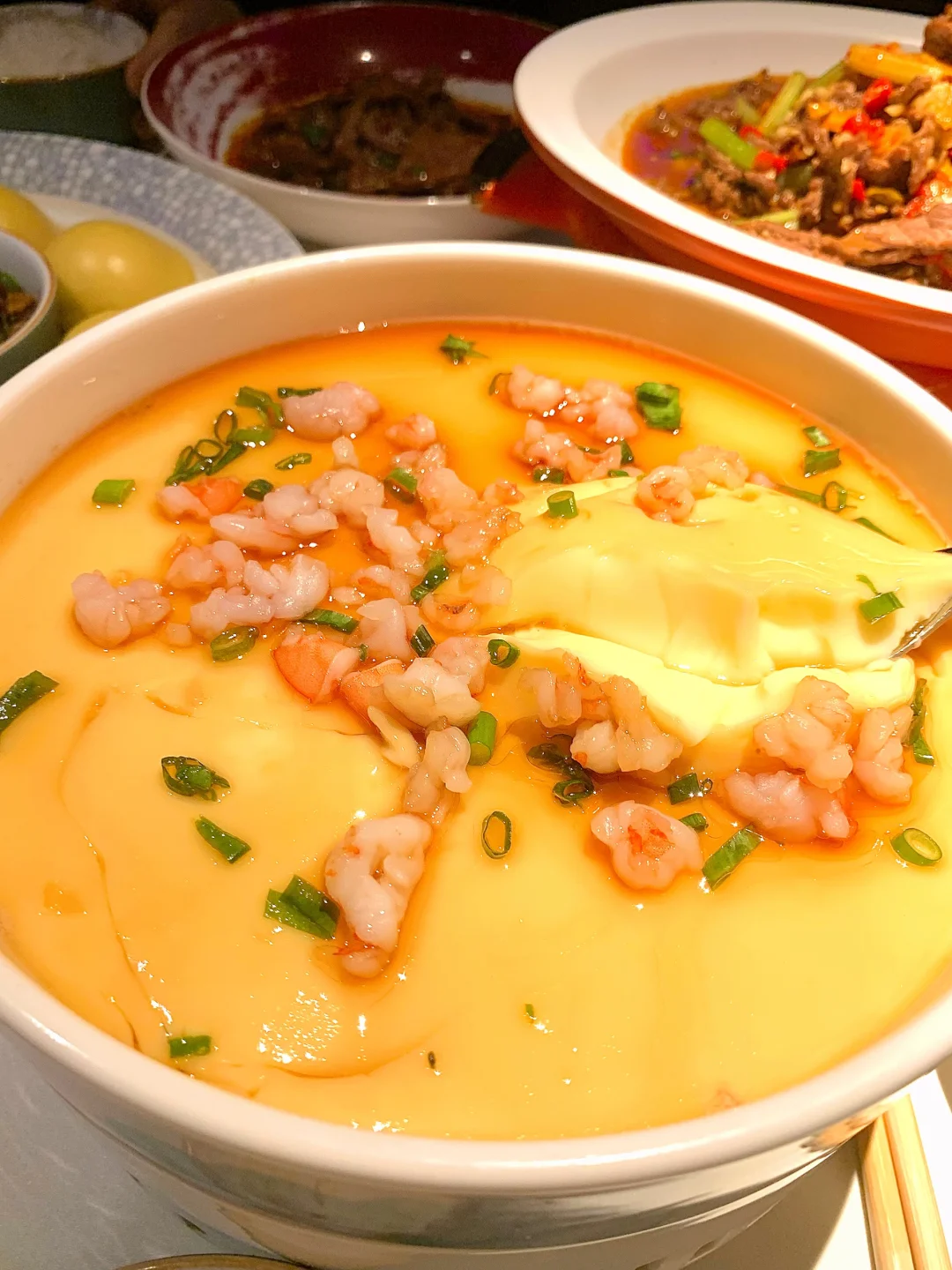 ✅ 虾仁水蒸蛋:蛋羹滑嫩像布丁一样,入口即化,大虾仁鲜灵Q弹。
