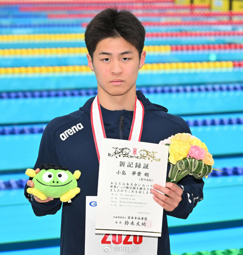 小岛梦贵(2008)200混:1:56.53 WJR400混:4:08.84 WJR