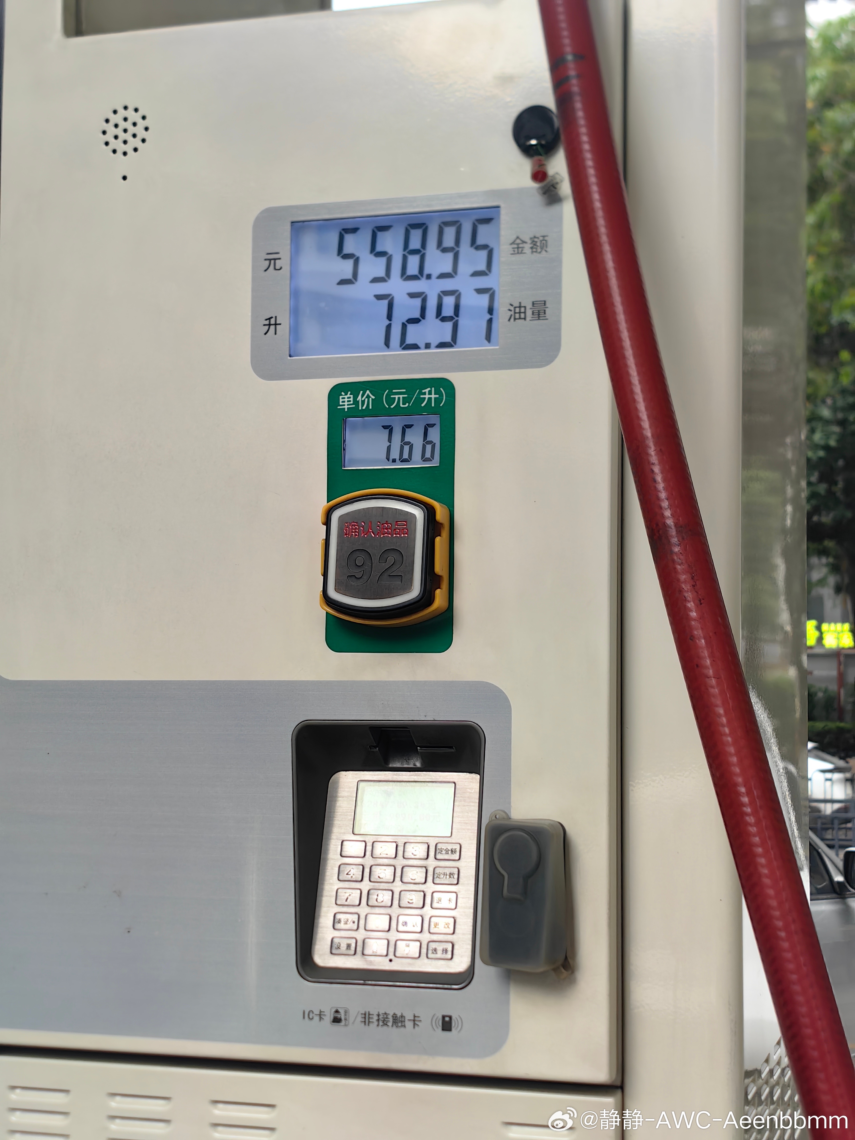中国石化提示提前错峰加油我的霸道去加油了,虽然今天油价还没涨但500多的油费,也