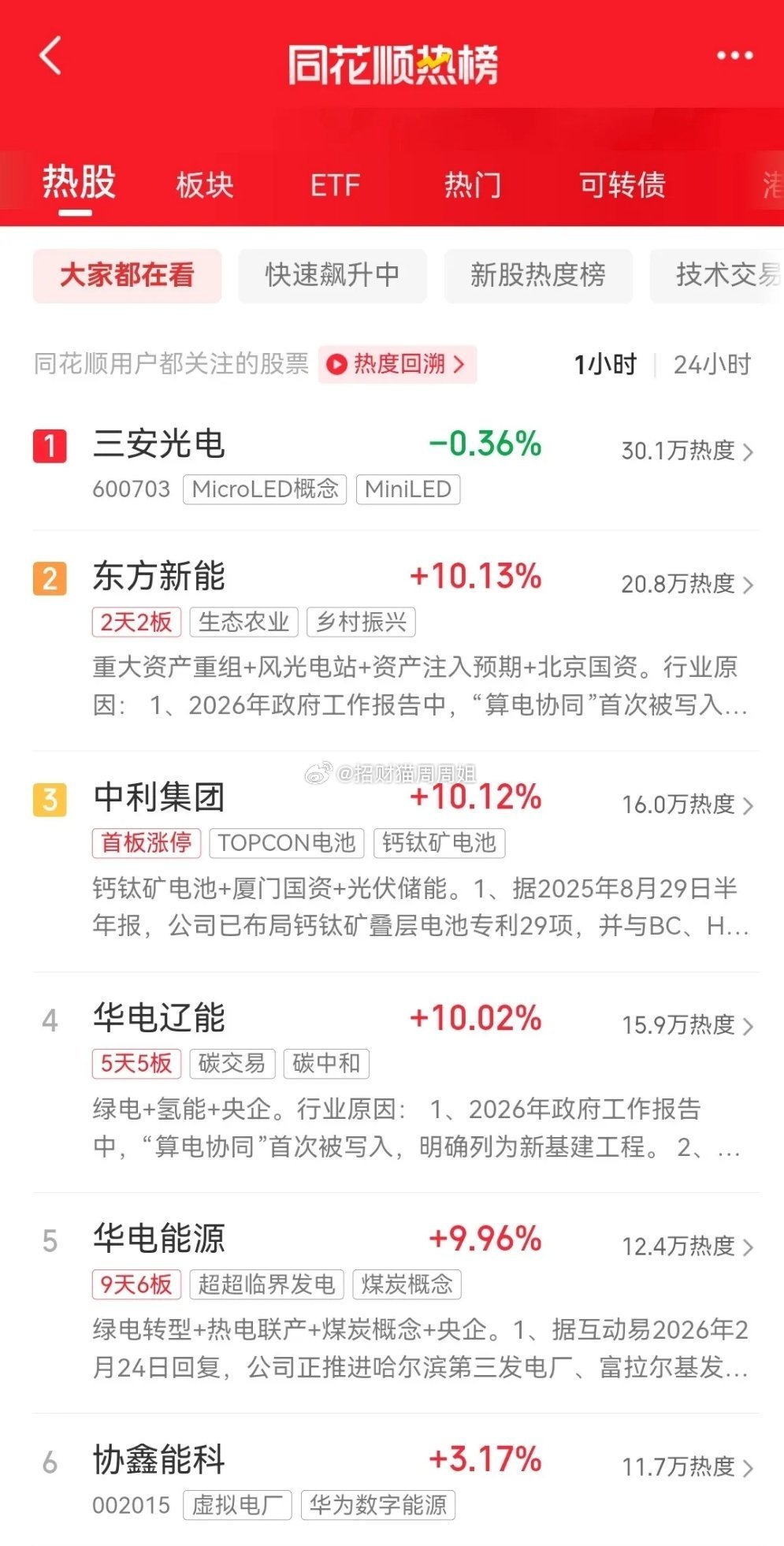 明天即将开盘,目前同花顺最新热榜排行前十名如下: