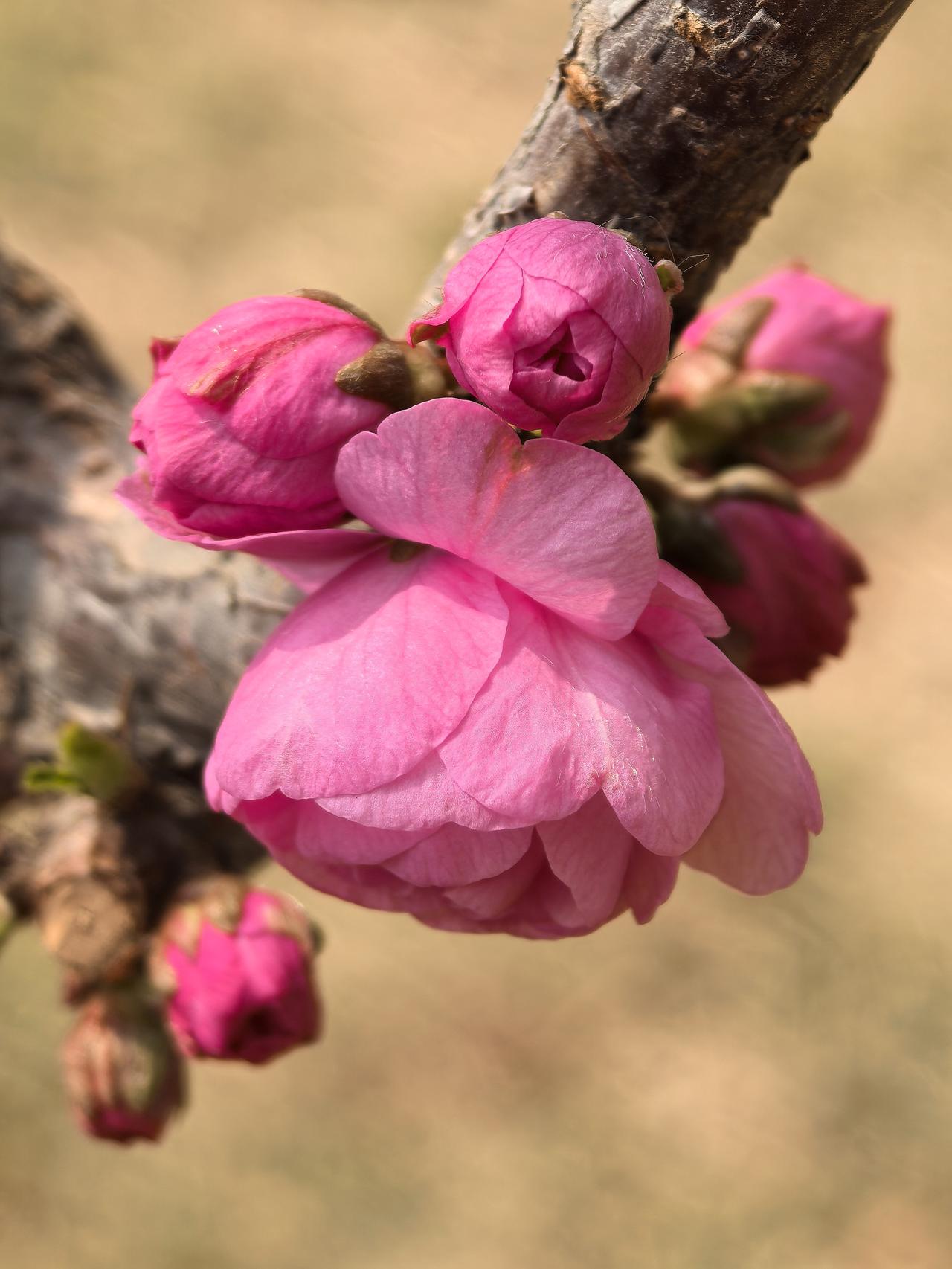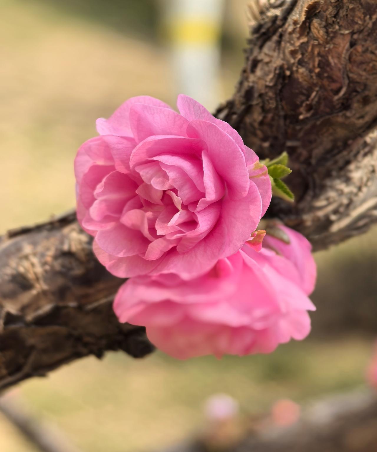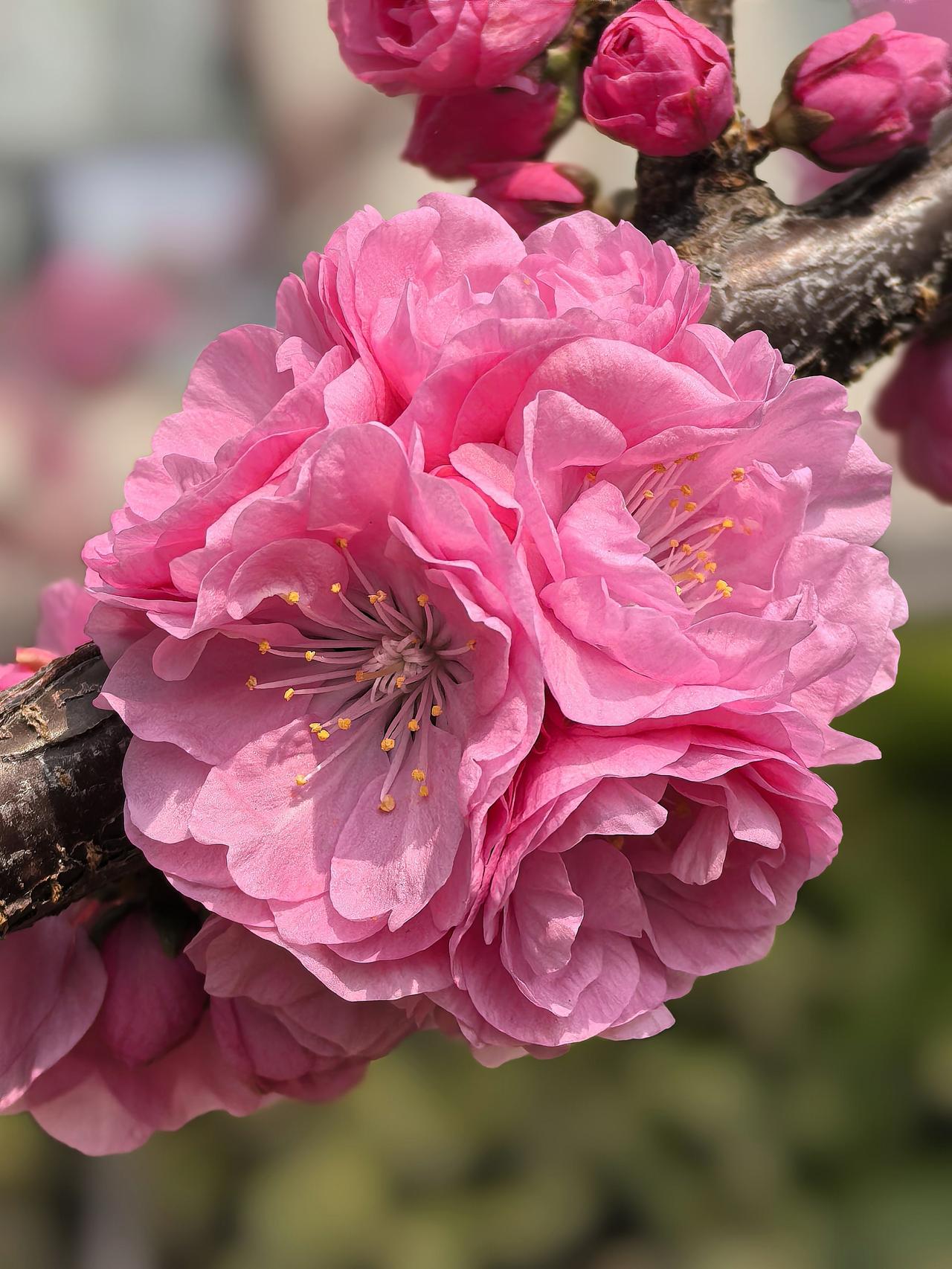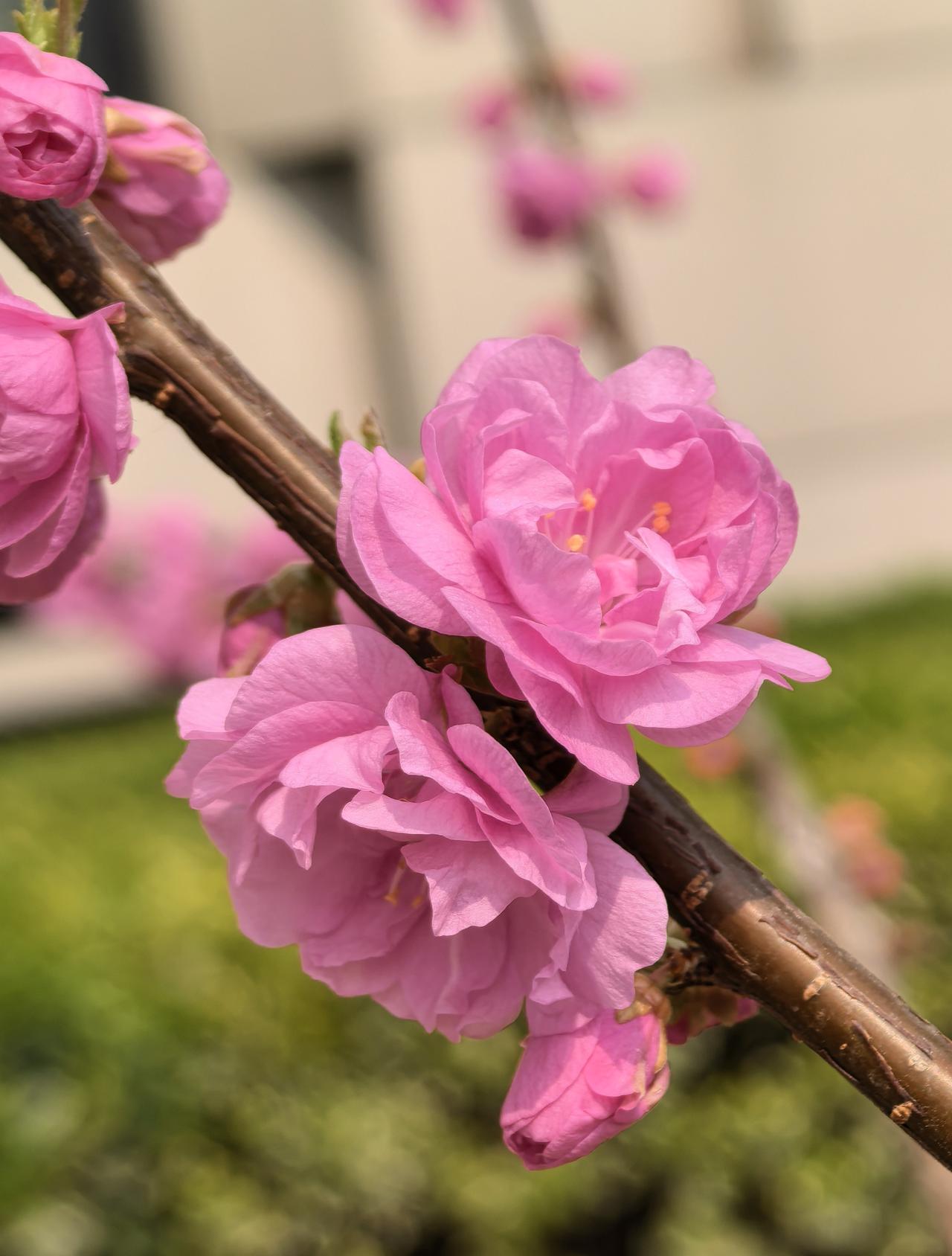 出门遛弯,竟在农科院院子里邂逅了一棵开花的梅花树,简直太惊喜!那玫瑰红色的花苞,像一个个小巧玲珑的灯笼,透着股俏皮劲儿。粉色的重瓣花朵层层叠叠,宛如少女羞涩的裙摆,在微风中轻轻摇曳。 梅花向来是坚韧的象征,在这乍暖还寒时独自绽放,美得毫不张扬。我站在树下,贪婪地嗅着那淡雅的花香,感觉所有烦恼都被这股清香驱散了。生活中就是需要这样的小确幸,不经意间就能治愈人心。