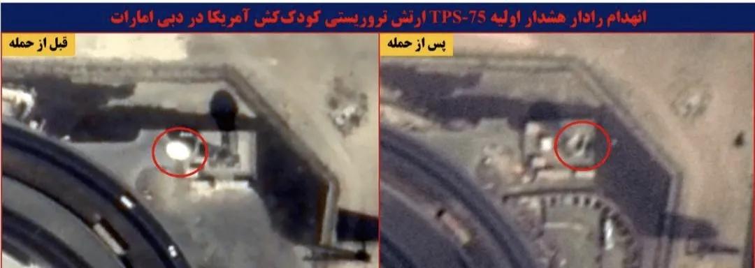 伊朗伊斯兰革命卫队发布了摧毁阿联酋迪拜的美制AN/TPS-75雷达和沙特拉夫哈基地的美制AN/FPS-117雷达的卫星照片。