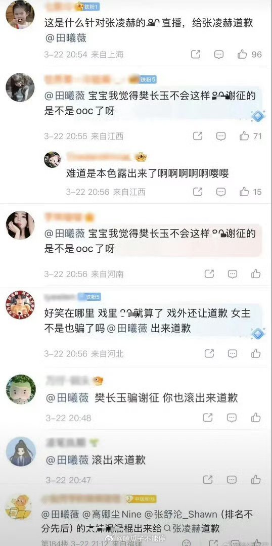 张凌赫粉丝在要求田曦薇道歉??