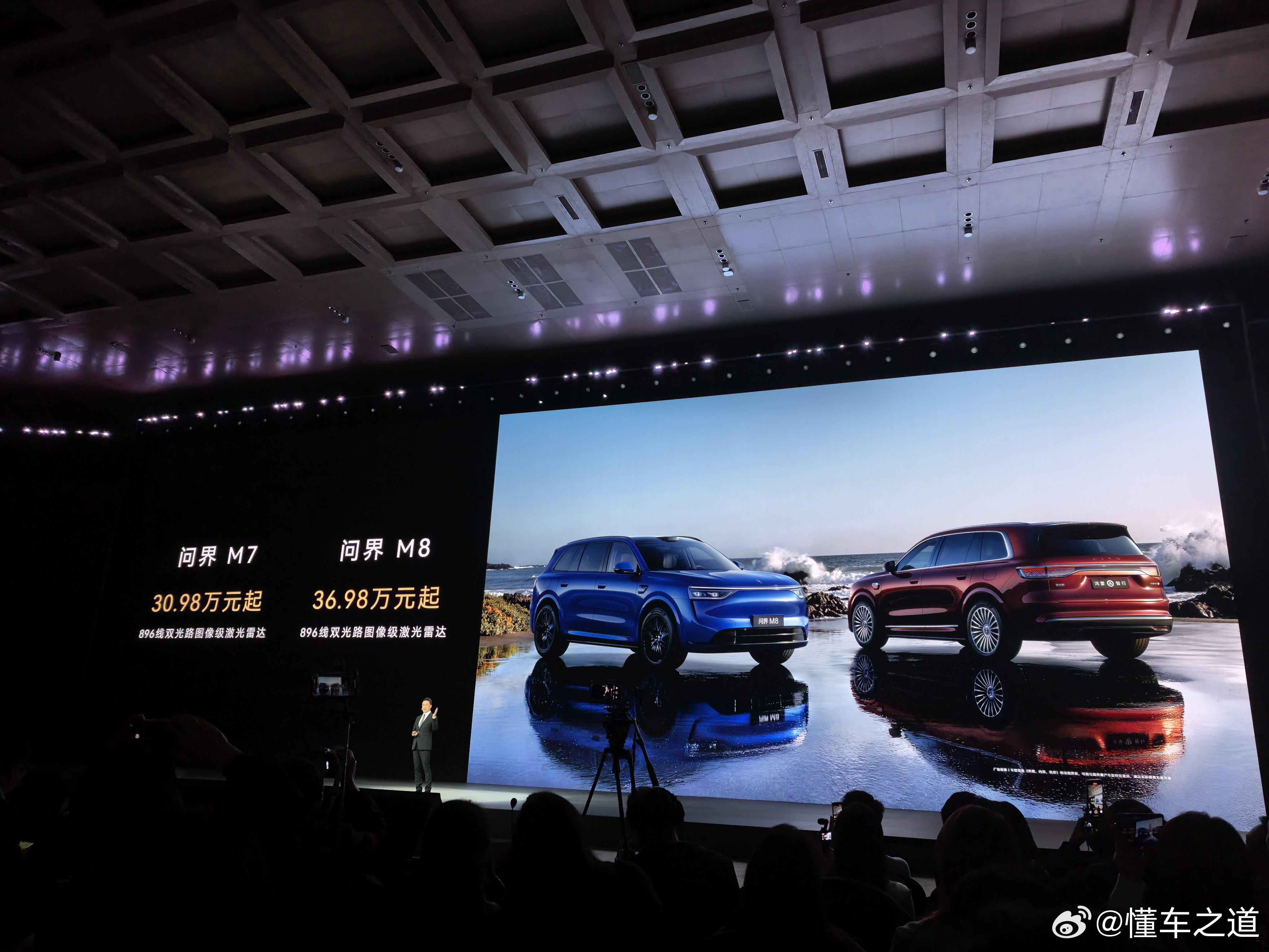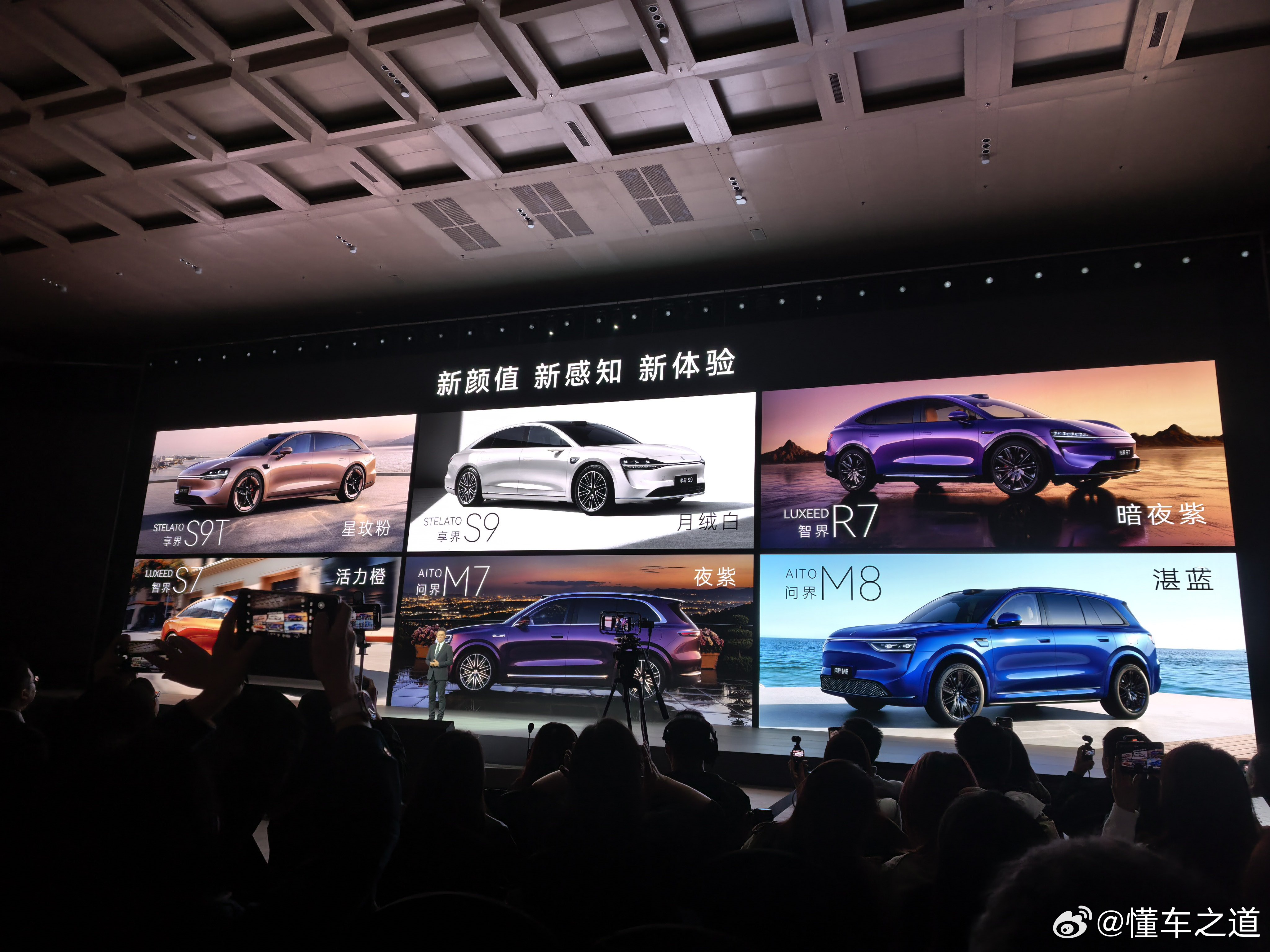 鸿蒙智行系列车型发布,享界S9 S9T和问界M7、问界M8,智界R7 S7 车型。搭载896线激光雷达上车。配新颜色。 长沙·长沙国际会议中心