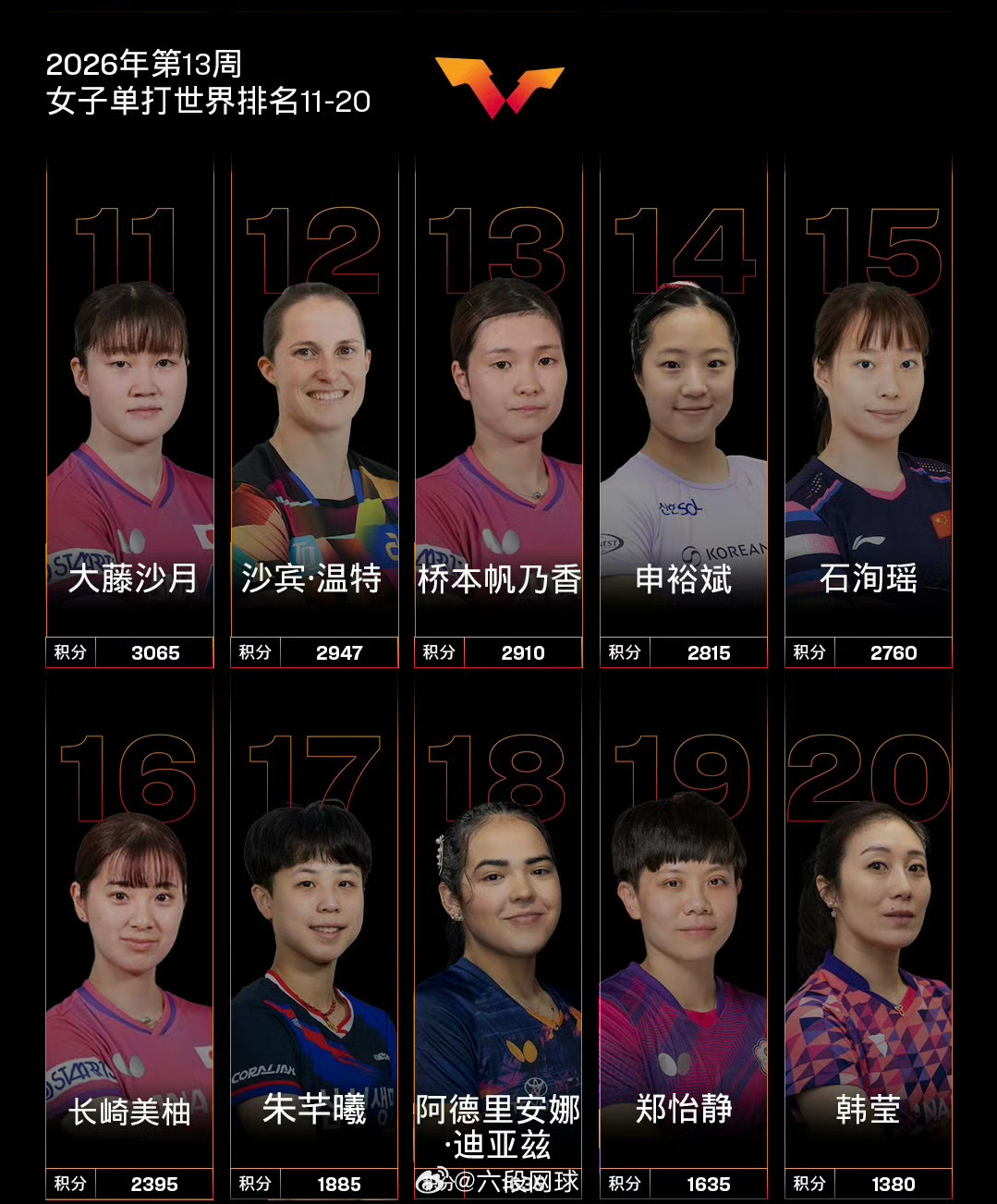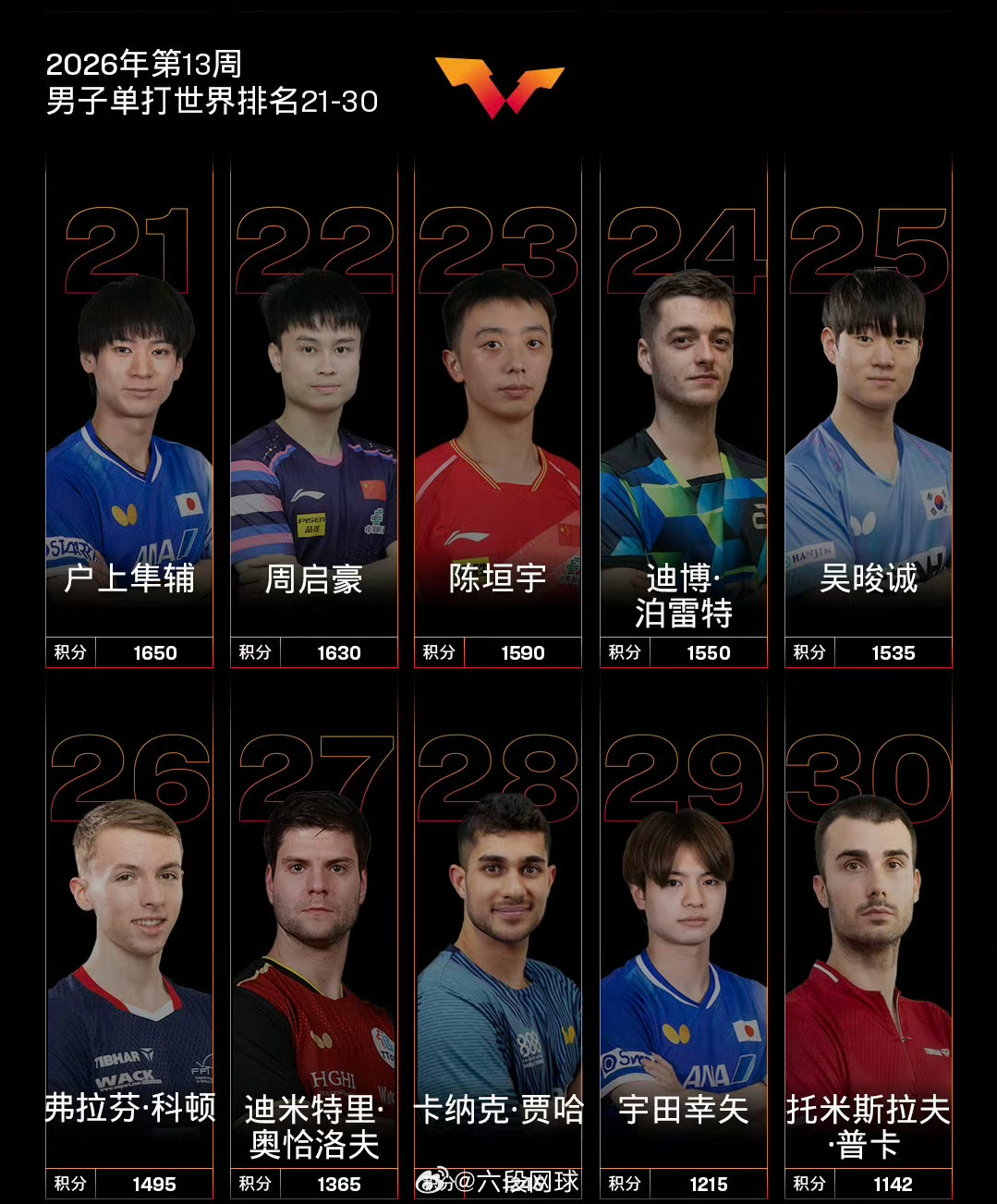 国际乒联第13周世界排名乒乓球 国际乒联2026年第13周世界排名出炉:男子单打