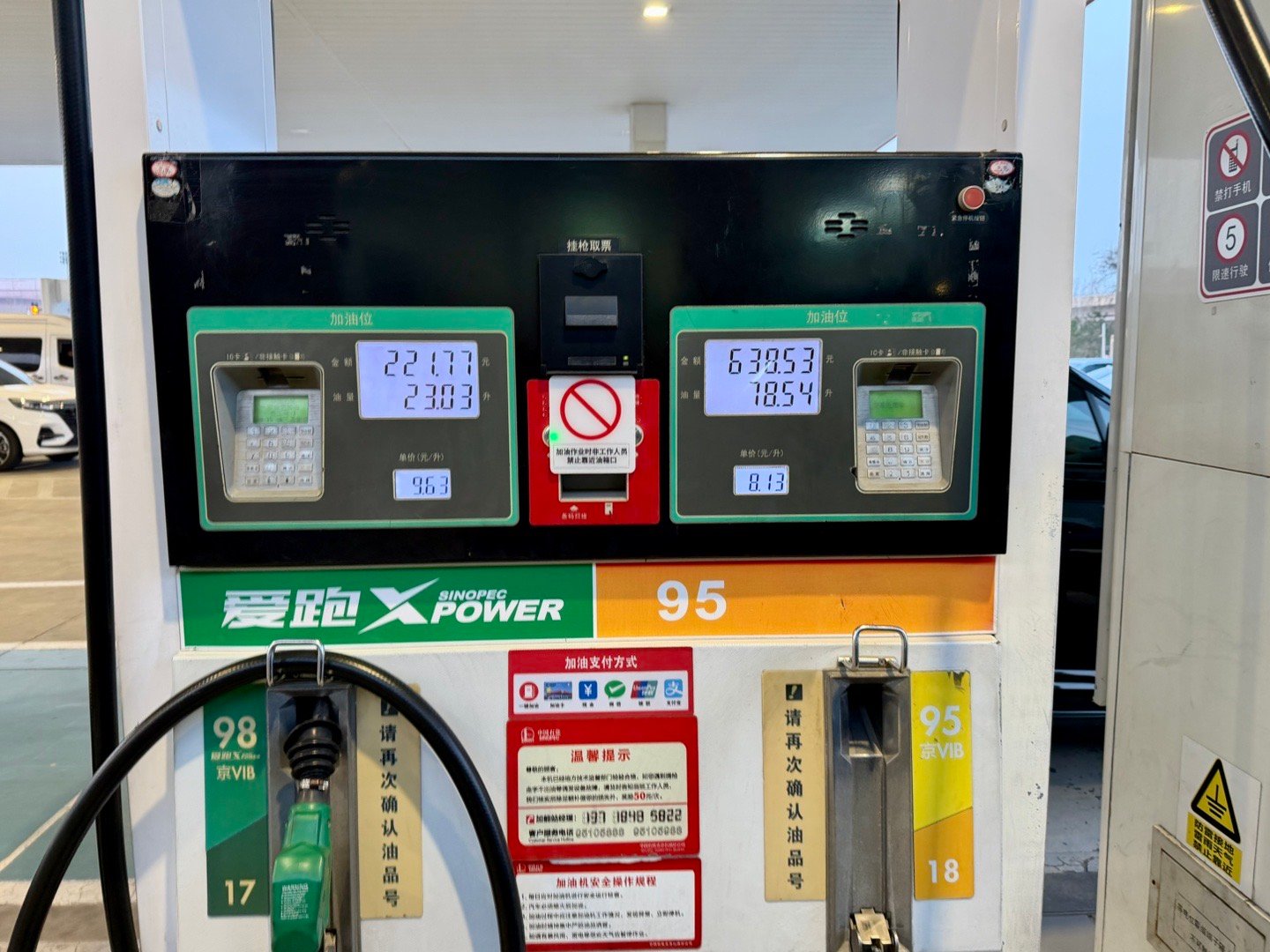 一秒钟队都没排,直接加满一箱95号油,8.13元/升,干了78升,带劲!