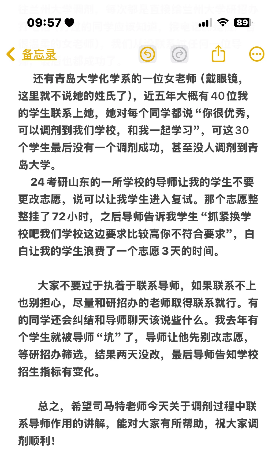 我经手多年调剂,有几个真实案例很能说明问题。我们往兰州大学送过不少学生,全程只联系研招办,从没找过任何导师,最后都顺利调剂成功。而青岛大学有位导师,近几年先后答应了我近40名学生,说很优秀、可以调剂,结果最终无一人被录取。还有24考研时,某高校导师让学生死守一个志愿不要改,挂了72小时,最后却说要求太高、学生不符合,白白浪费三天宝贵志愿时间