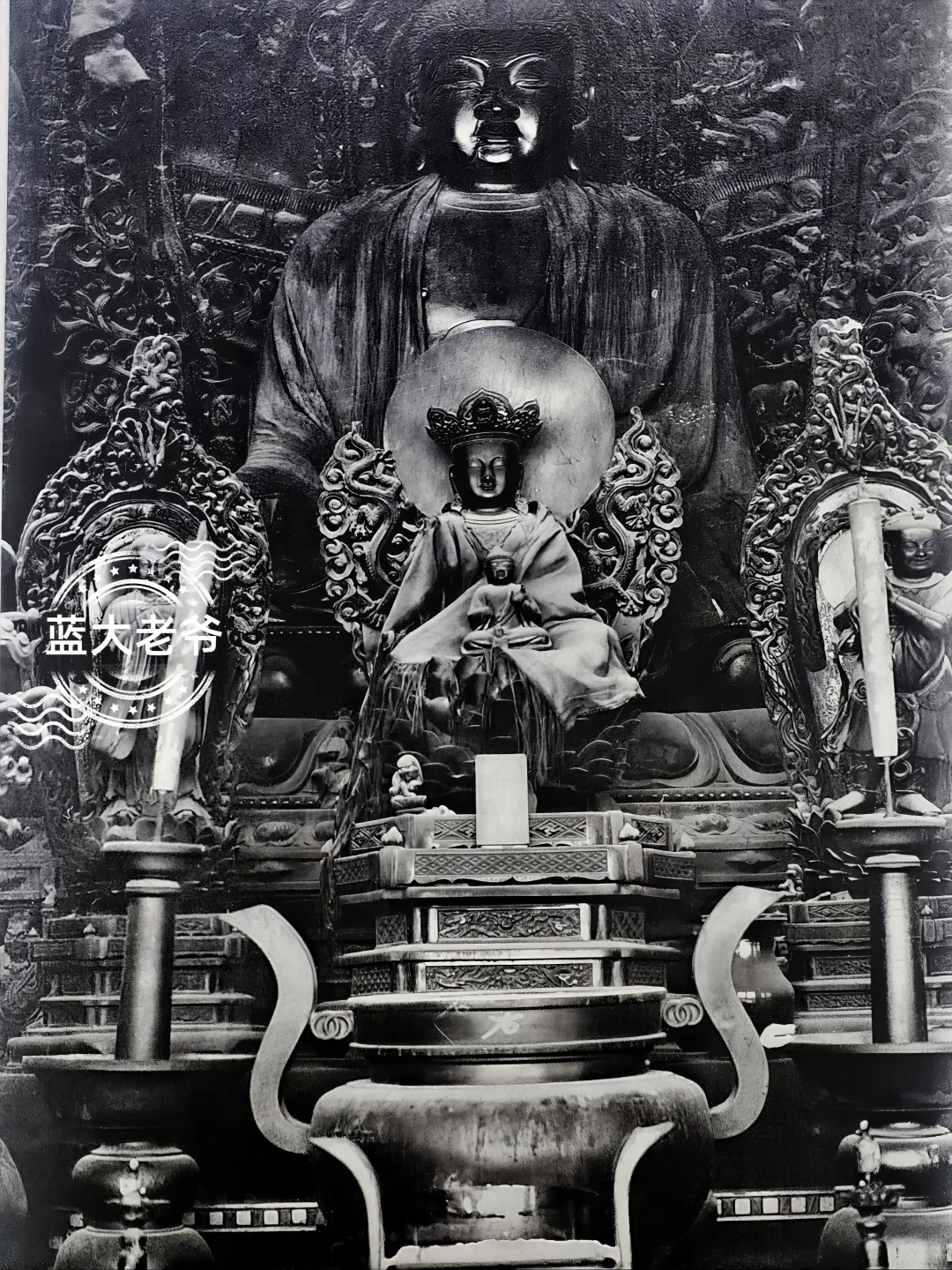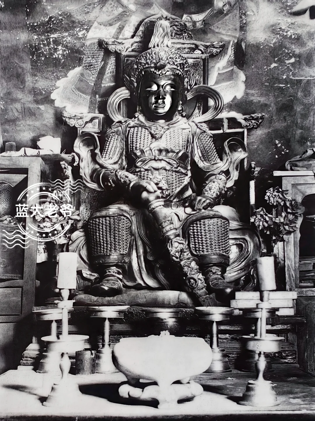 💖民国格局尚完整,沿街偏东北向山门,中轴观音殿、后抱厦大殿、东西伽蓝祖师配殿与后殿大悲坛,东西两路禅房客堂与庙产,西路到小八道湾都是,时寺内尚存造像百余尊,山门殿供关帝四大天王,观音殿供铜镀金观音像与关帝真武泥像,大殿供木质金身释迦佛二尊者,菩萨十八罗汉,伽蓝殿供关帝,祖师殿供三祖师,大悲坛供铜镀金大悲菩萨,东西夹道配殿另供娘娘药王吕祖,礼乐法器计数十件,版藏经一部。建国后寺成为民居杂院,拓修大街拆了山门,即是今便民浴池文具店门脸的位置。