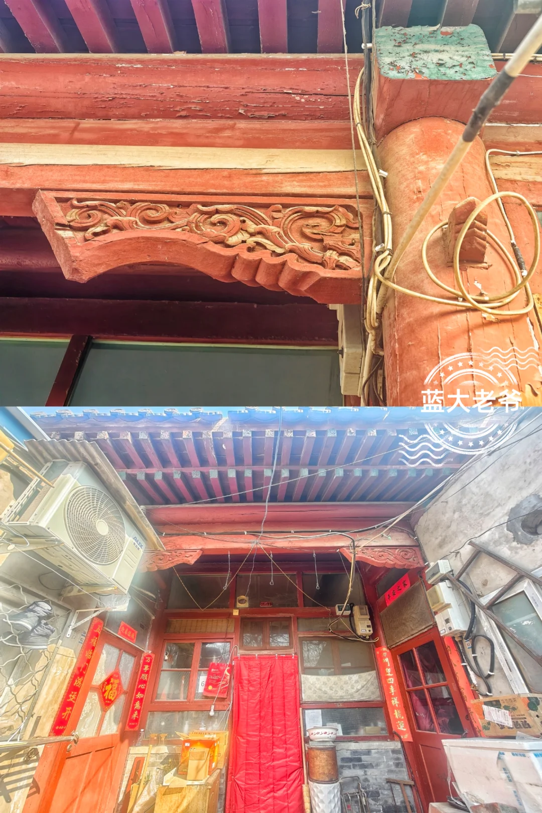 💖杂院虽乱,但观音殿大殿祖师殿及东西禅房尚存:一通老碑横陈在大殿东侧观音殿后墙下,位置是是明清双面碑,以前泼过水抠过泥,字迹已然不辨,大殿西为嘉靖39年洪法直庵松公行实碑;上次转时祖师殿住家修缮看到了殿内老梁;带抱厦的大殿梁架粗硕,槛窗木雕精细,只是被私建阻塞门庭,顶糊水泥的后抱厦与清康熙精彩的龙纹琉璃勾滴不在这个院里,需要绕行小八道湾,龙纹细腻肌肉感十足;前院可见大殿建于一米高台明之上,到后抱厦又入地一米,一方面是旧时建筑因近水逐级抬高,同时也因现代建筑又抬高地基所致;东禅房窄道边,精美的汉白玉柱础露出迷人半圆,这雍容气度还不得是明的。