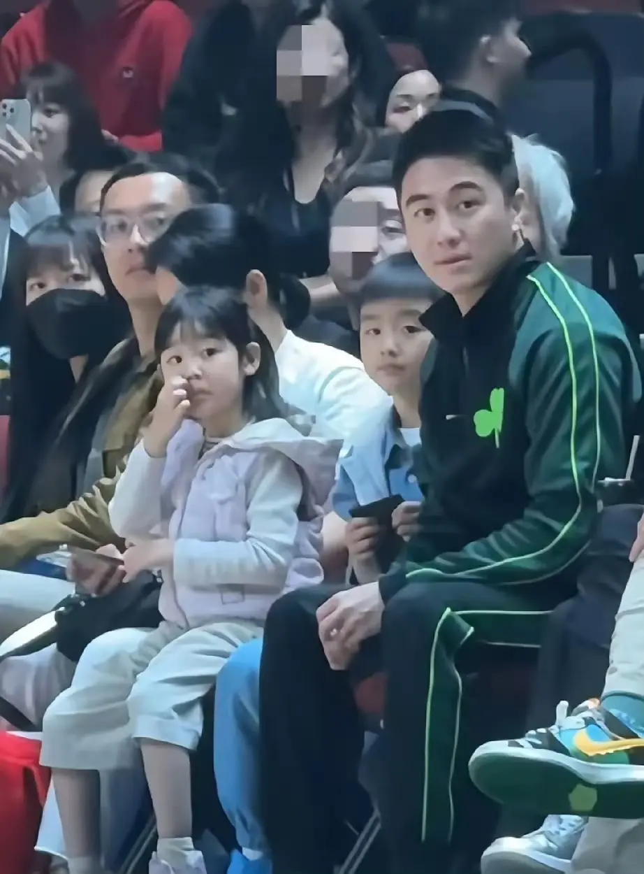 何猷君带娃看球,儿子酷似奚梦瑶,女儿简直是他的翻版!